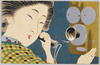 [色紙に向かう和装女性] [Woman in Kimono in Front of Colored Paper] |