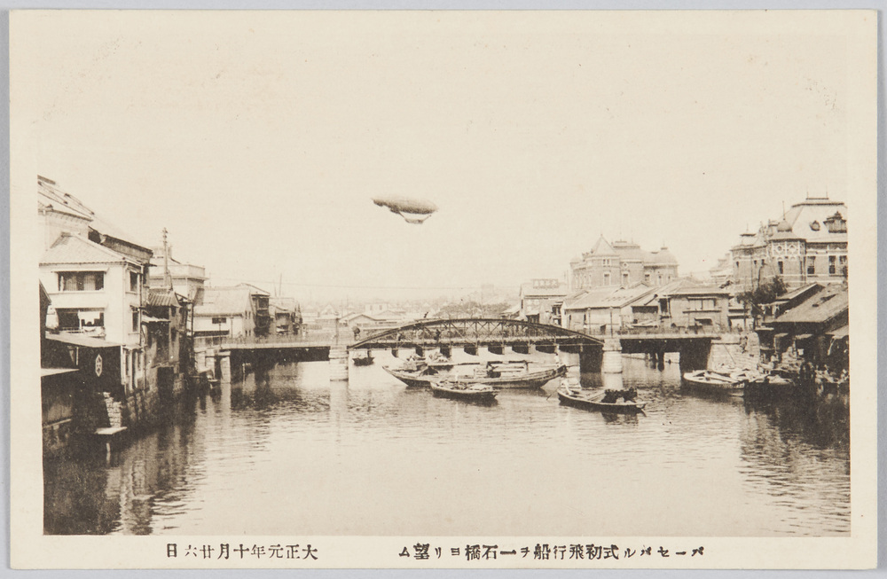 | 7 | ![]() | 88134324 | バーセバル式初飛行船ヲ一石橋ヨリ望ム 大正元年十月二十六日 The First Parseval Type Airship Viewed from the Ichikokubashi Bridge, October 26th, 1912 | 大正期 大正元年 1912 20世紀 | ||