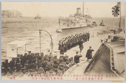 March 15th, Warship Ikoma Leaving Yokosuka to Be Present at the 100th Anniversary of the Independence of Argentina, South America, and the Japan-British Exhibition (Farewell of the Minister of the Navy, the Chief of the Naval General Staff, and Others)