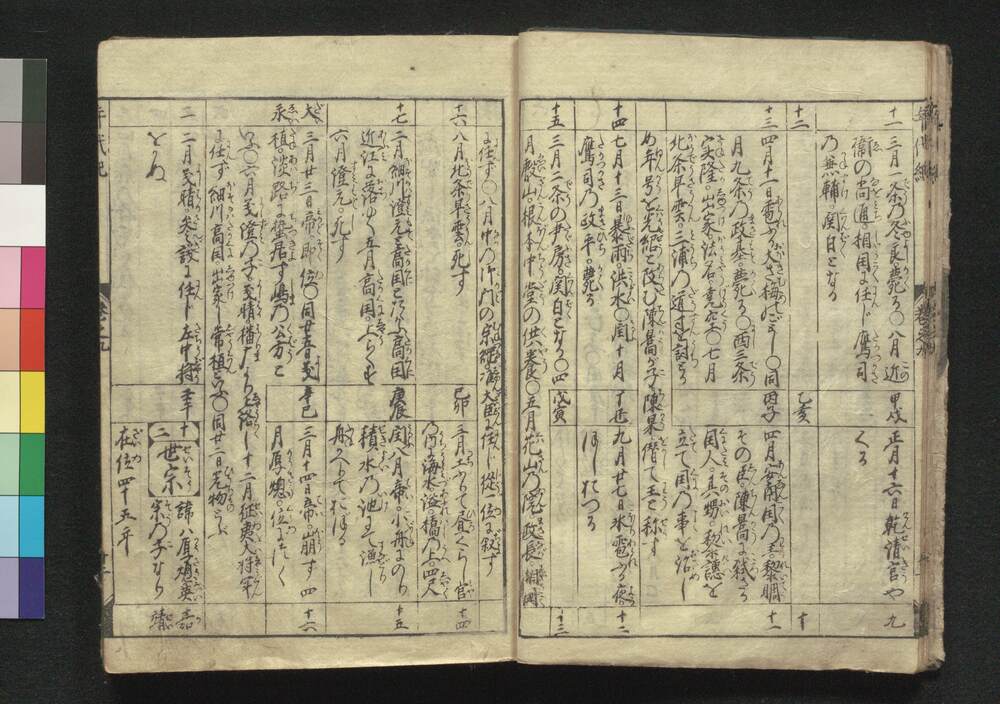 | 3 | ![]() | 89001004 | 改正和漢年代記 二 Kaisei Wakan Nendaiki (Chronicles of Japan and China, Revised Edition), 2 | 江戸後期 安永2年正月 1773 18世紀 | 22.7 cm x 16.2 cm | |