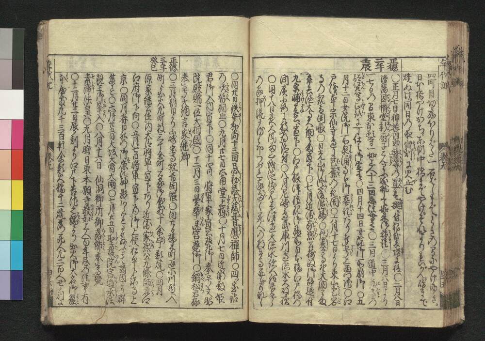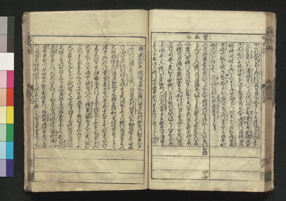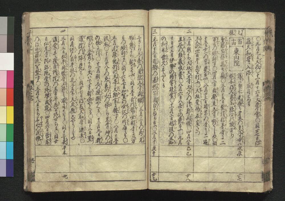 | 4 | ![]() | 89001005 | 改正和漢年代記 三 Kaisei Wakan Nendaiki (Chronicles of Japan and China, Revised Edition), 3 | 江戸後期 安永2年正月 1773 18世紀 | 22.7 cm x 16.2 cm | |