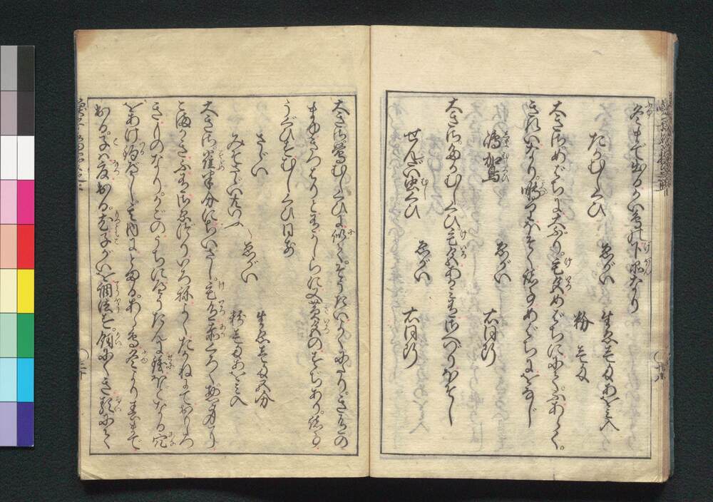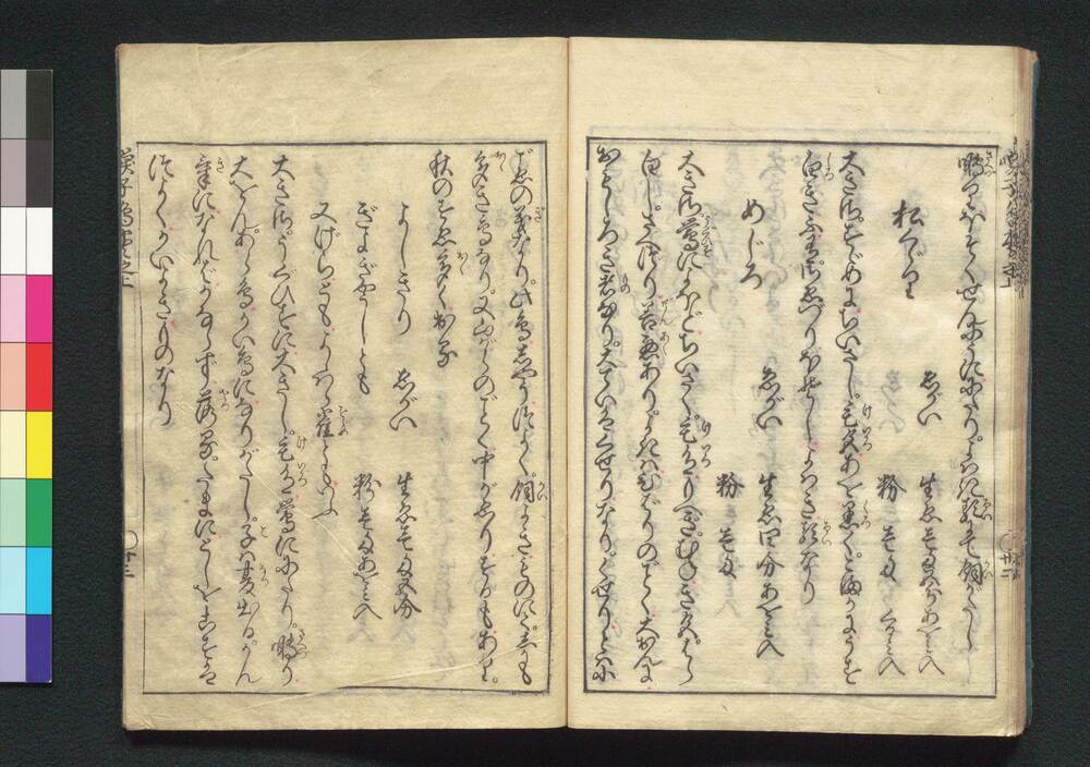 | 1 | ![]() | 90204134-90204135 | 喚子鳥 Yobukotori (Calling Birds) | 蘇生堂主人/著 | 江戸中期 宝永7年 1710 18世紀 | 22.8 cm x 16.0 cm |