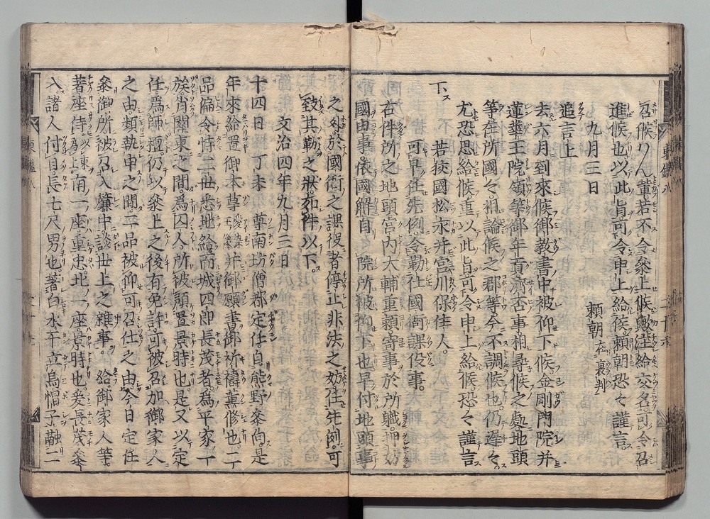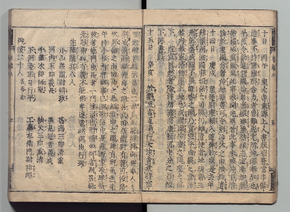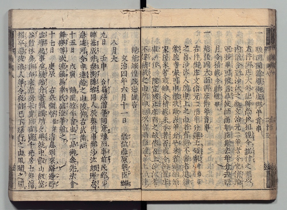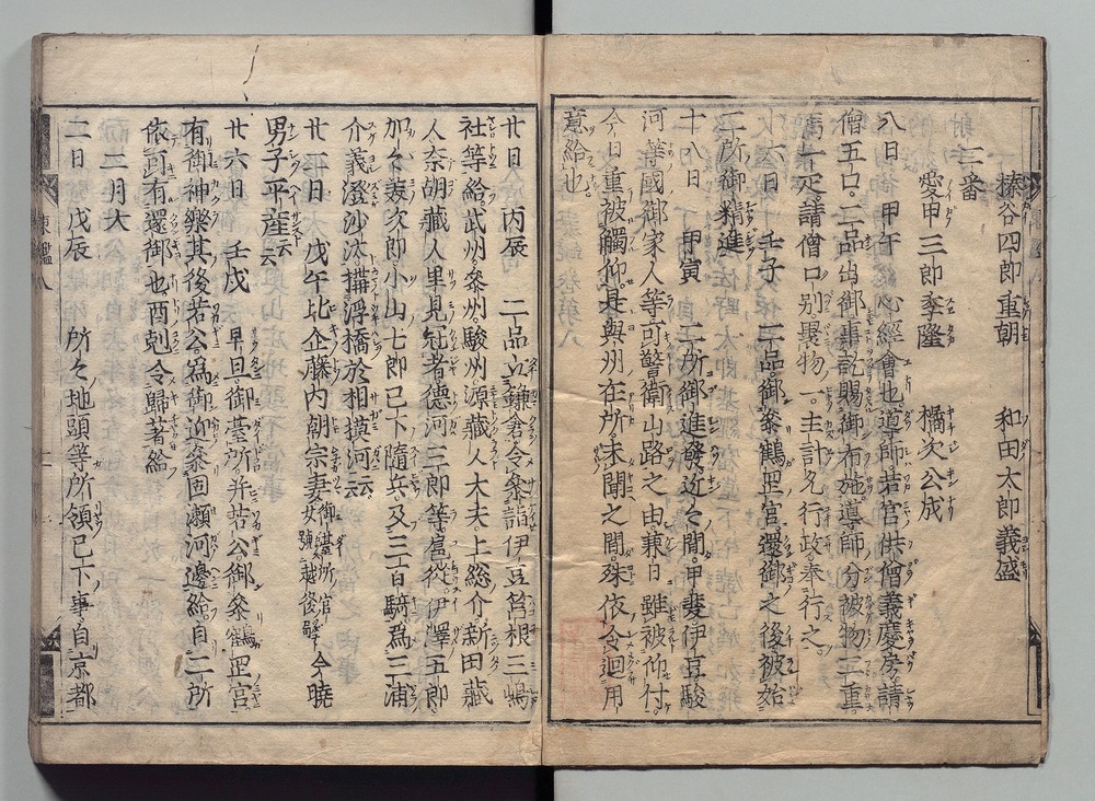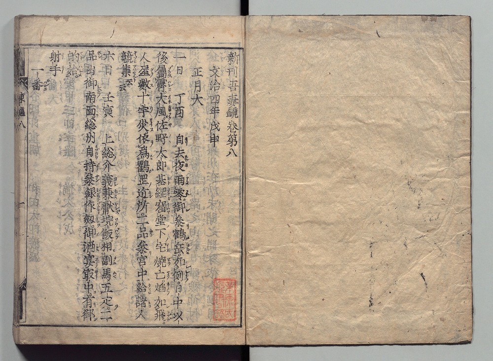 | 8 |  | 89201701 | 吾妻鏡 巻第十四・十五 Azuma Kagami (The Mirror of the East), Vols. 14 & 15 | | 江戸前期 寛文元年12月 1661 17世紀 | 26.9 cm x 19.7 cm |