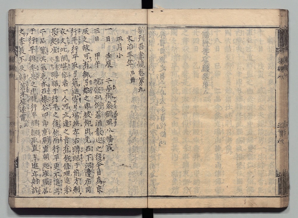 | 4 |  | 89201696 | 吾妻鏡 巻第四・五 Azuma Kagami (The Mirror of the East), Vols. 4 & 5 | | 江戸前期 寛文元年12月 1661 17世紀 | 26.9 cm x 19.7 cm |