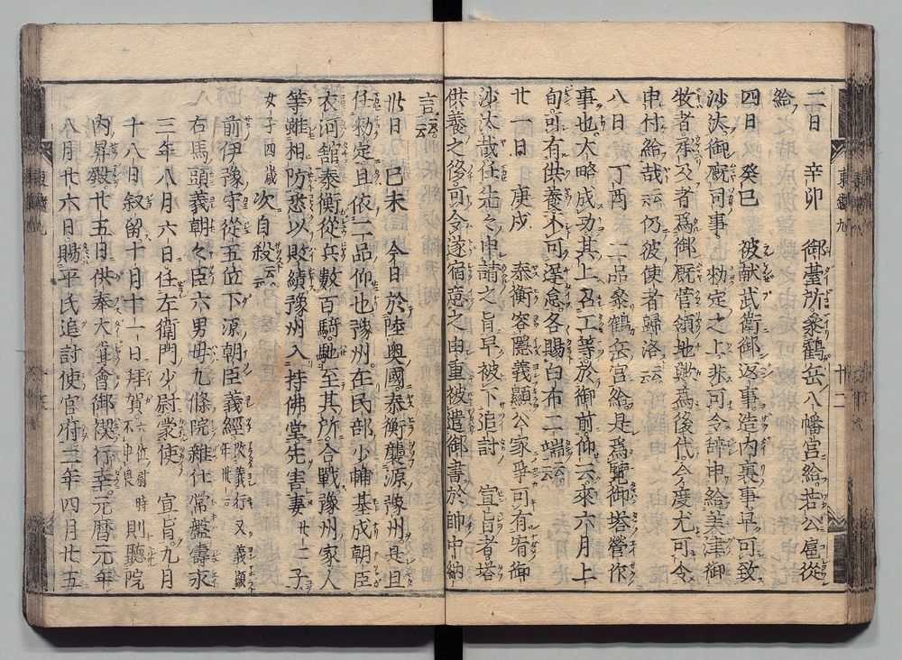 | 7 |  | 89201700 | 吾妻鏡 巻第十二・十三 Azuma Kagami (The Mirror of the East), Vols. 12 & 13 | | 江戸前期 寛文元年12月 1661 17世紀 | 26.9 cm x 19.7 cm |