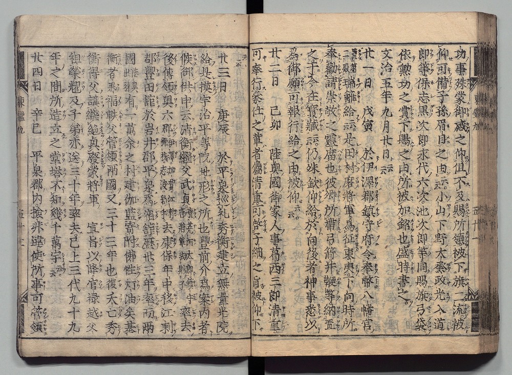 | 14 |  | 89201707 | 吾妻鏡 巻第二十六・二十七 Azuma Kagami (The Mirror of the East), Vols. 26 & 27 | | 江戸前期 寛文元年12月 1661 17世紀 | 26.9 cm x 19.7 cm |