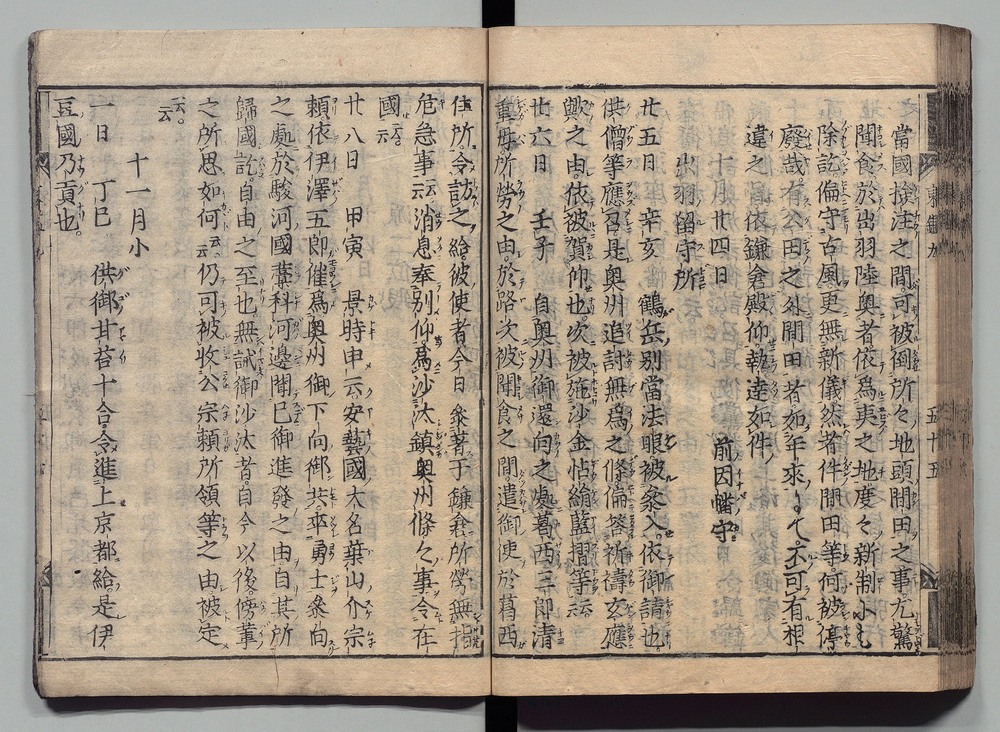 | 13 |  | 89201706 | 吾妻鏡 巻第二十四・二十五 Azuma Kagami (The Mirror of the East), Vols. 24 & 25 | | 江戸前期 寛文元年12月 1661 17世紀 | 26.9 cm x 19.7 cm |
