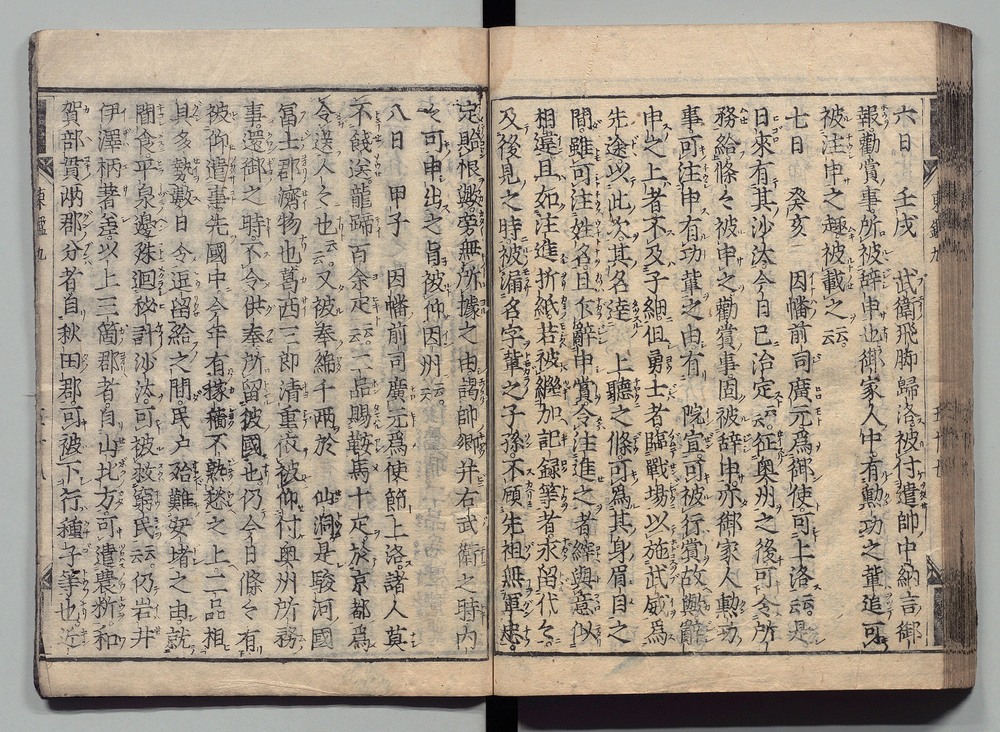 | 5 |  | 89201697 | 吾妻鏡 巻第六・七 Azuma Kagami (The Mirror of the East), Vols. 6 & 7 | | 江戸前期 寛文元年12月 1661 17世紀 | 26.9 cm x 19.7 cm |