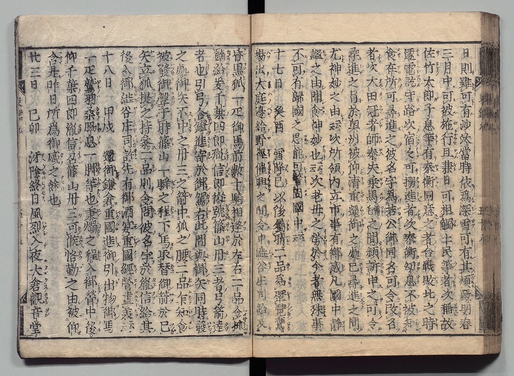 | 19 |  | 89201712 | 吾妻鏡 巻第三十六・三十七 Azuma Kagami (The Mirror of the East), Vols. 36 & 37 | | 江戸前期 寛文元年12月 1661 17世紀 | 26.9 cm x 19.7 cm |