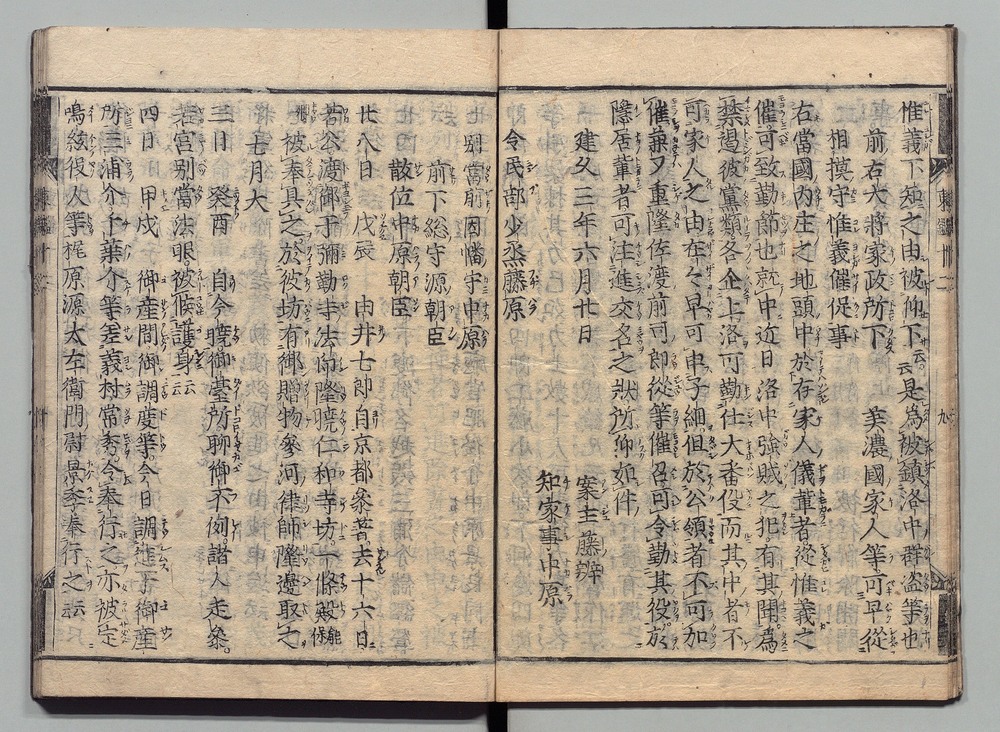 | 6 |  | 89201698 | 吾妻鏡 巻第八・九 Azuma Kagami (The Mirror of the East), Vols. 8 & 9 | | 江戸前期 寛文元年12月 1661 17世紀 | 26.9 cm x 19.7 cm |