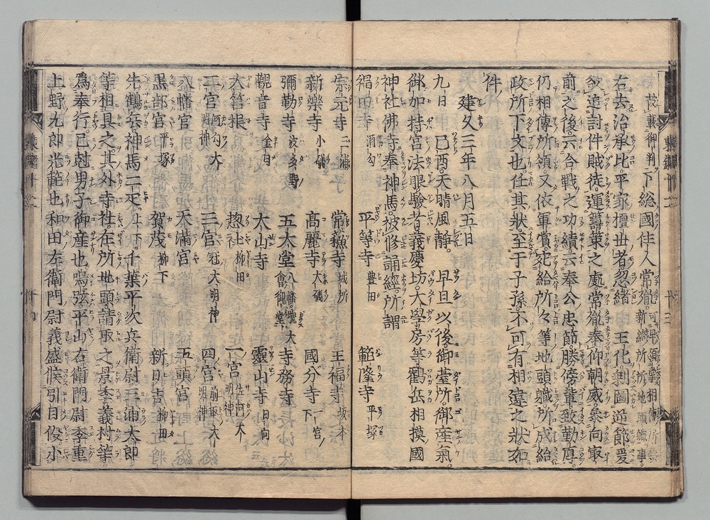 | 8 |  | 89201701 | 吾妻鏡 巻第十四・十五 Azuma Kagami (The Mirror of the East), Vols. 14 & 15 | | 江戸前期 寛文元年12月 1661 17世紀 | 26.9 cm x 19.7 cm |