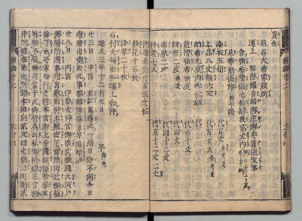 | 13 |  | 89201706 | 吾妻鏡 巻第二十四・二十五 Azuma Kagami (The Mirror of the East), Vols. 24 & 25 | | 江戸前期 寛文元年12月 1661 17世紀 | 26.9 cm x 19.7 cm |