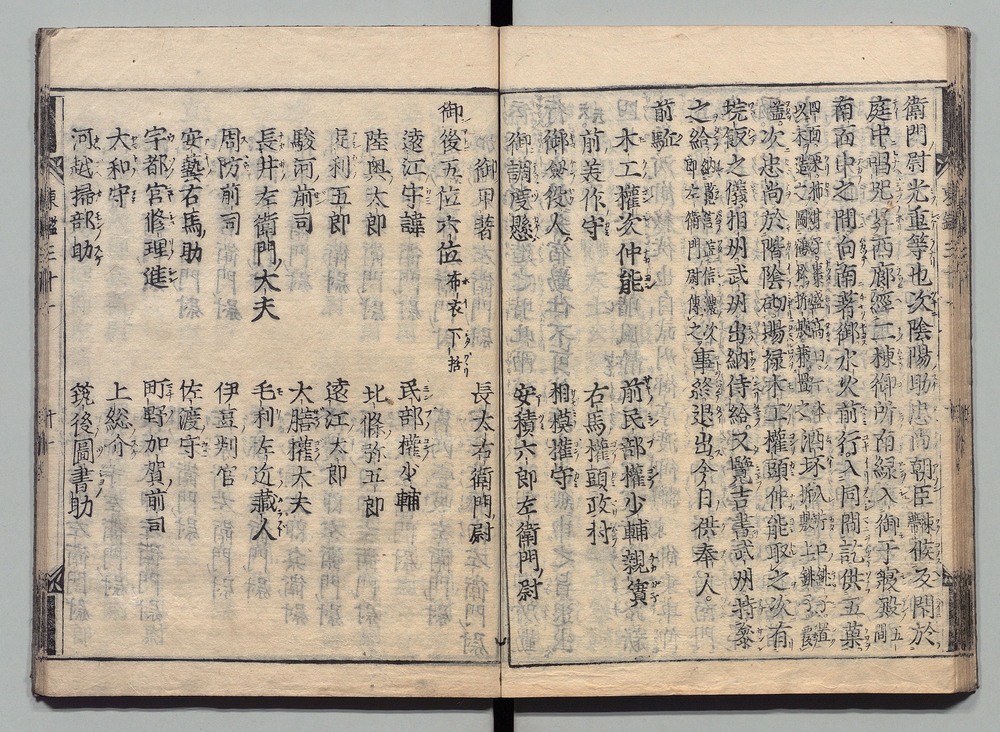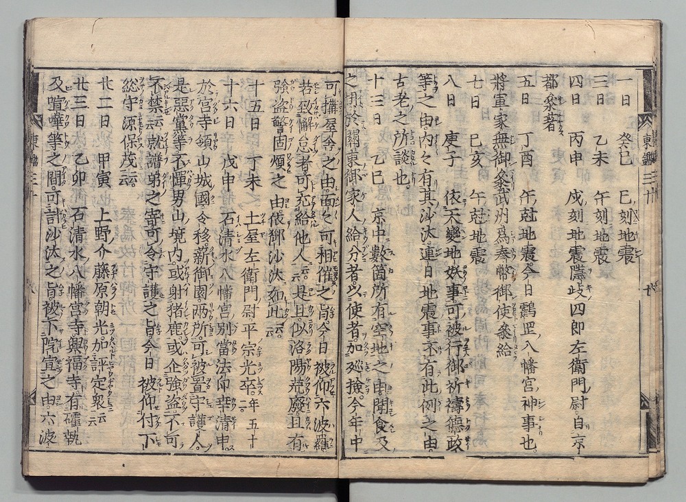 | 19 |  | 89201712 | 吾妻鏡 巻第三十六・三十七 Azuma Kagami (The Mirror of the East), Vols. 36 & 37 | | 江戸前期 寛文元年12月 1661 17世紀 | 26.9 cm x 19.7 cm |