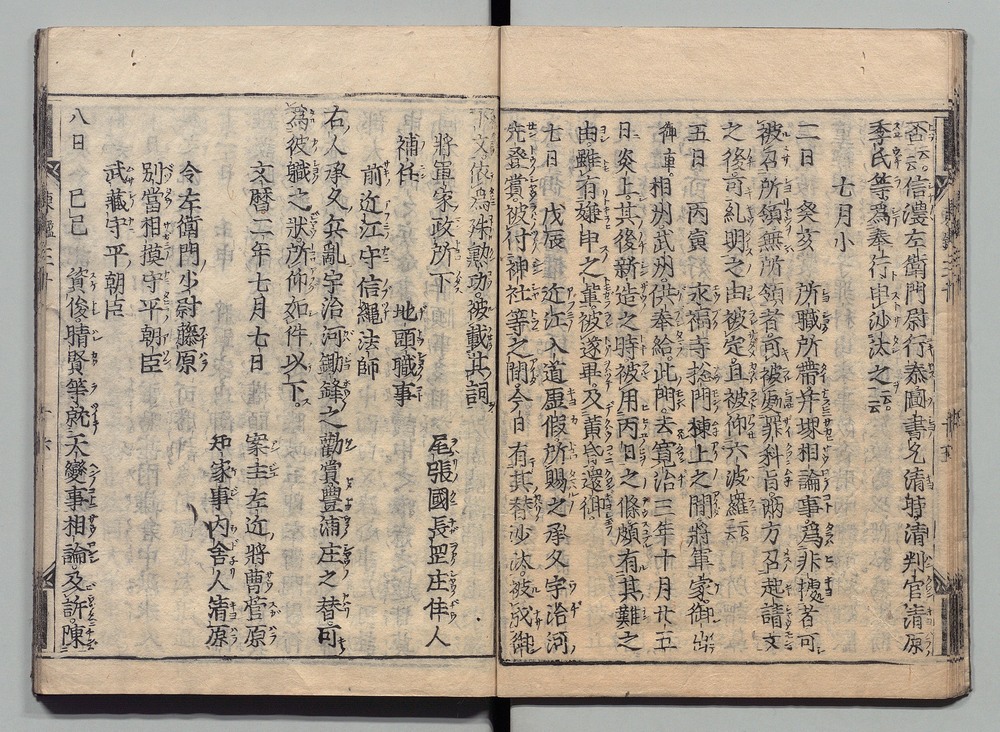 | 8 |  | 89201700 | 吾妻鏡 巻第十二・十三 Azuma Kagami (The Mirror of the East), Vols. 12 & 13 | | 江戸前期 寛文元年12月 1661 17世紀 | 26.9 cm x 19.7 cm |