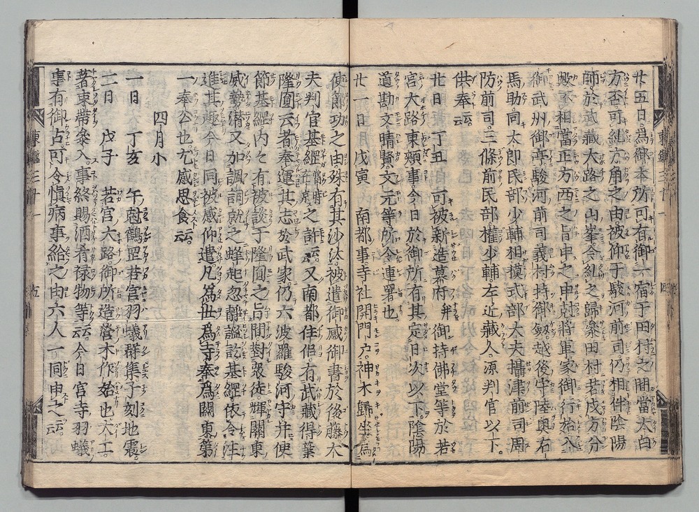 | 4 |  | 89201696 | 吾妻鏡 巻第四・五 Azuma Kagami (The Mirror of the East), Vols. 4 & 5 | | 江戸前期 寛文元年12月 1661 17世紀 | 26.9 cm x 19.7 cm |