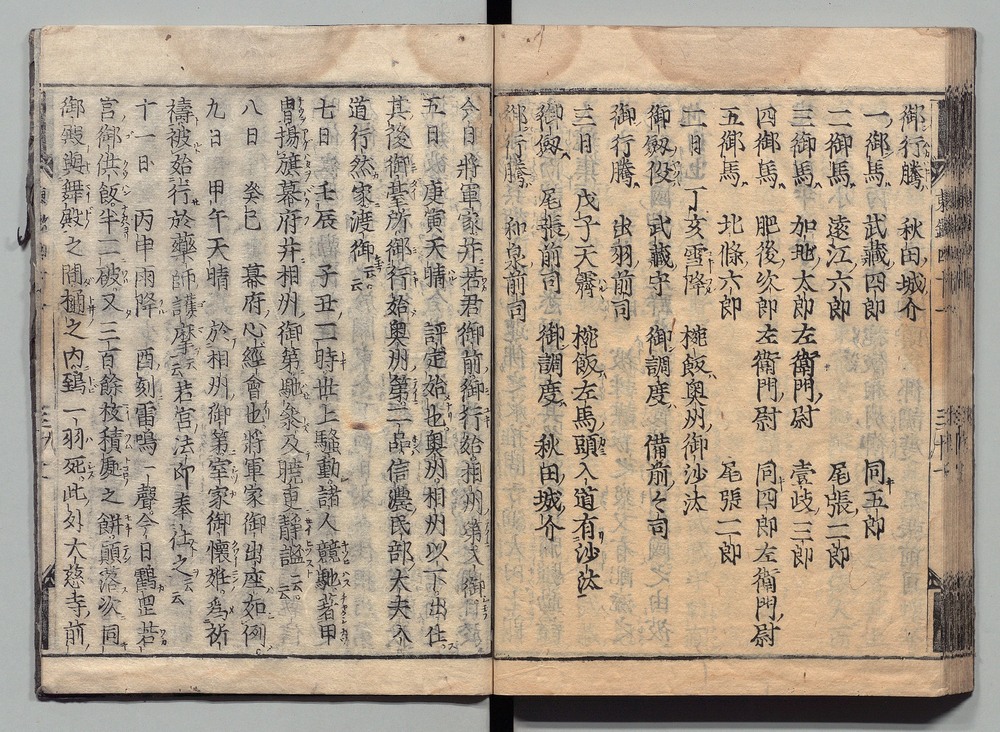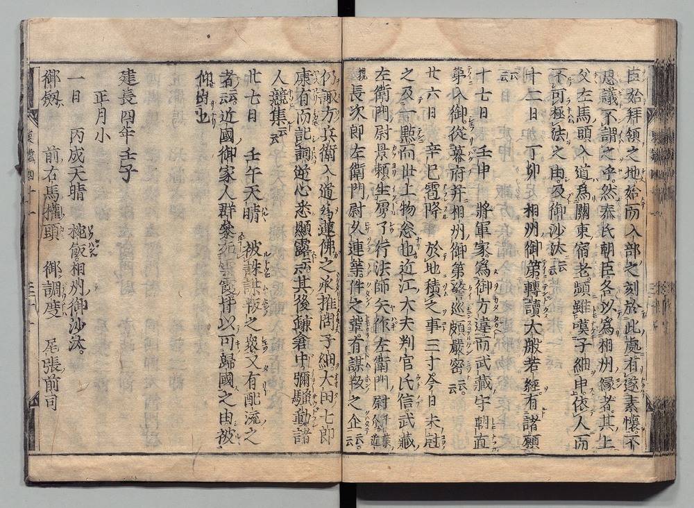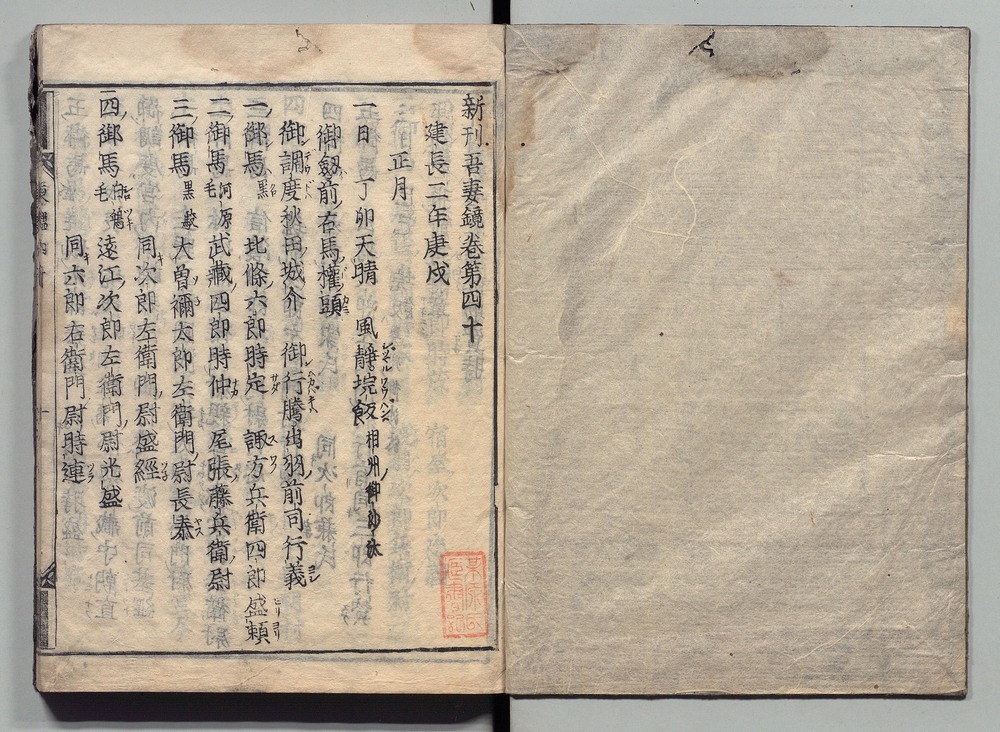 | 19 |  | 89201711 | 吾妻鏡 巻第三十四・三十五 Azuma Kagami (The Mirror of the East), Vols. 34 & 35 | | 江戸前期 寛文元年12月 1661 17世紀 | 26.9 cm x 19.7 cm |