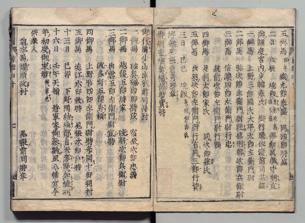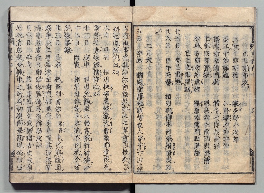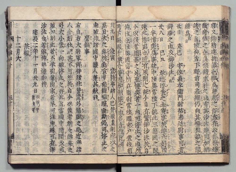 | 8 |  | 89201700 | 吾妻鏡 巻第十二・十三 Azuma Kagami (The Mirror of the East), Vols. 12 & 13 | | 江戸前期 寛文元年12月 1661 17世紀 | 26.9 cm x 19.7 cm |