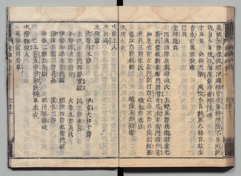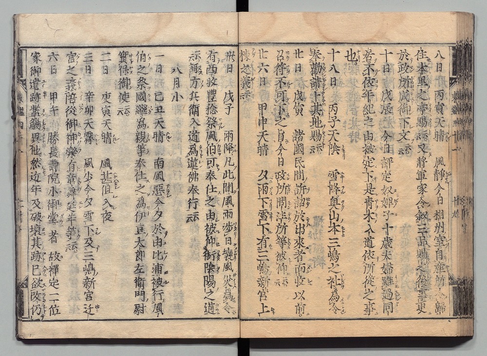 | 11 |  | 89201703 | 吾妻鏡 巻第十八・十九 Azuma Kagami (The Mirror of the East), Vols. 18 & 19 | | 江戸前期 寛文元年12月 1661 17世紀 | 26.9 cm x 19.7 cm |
