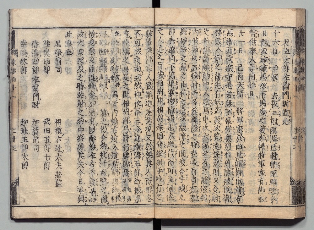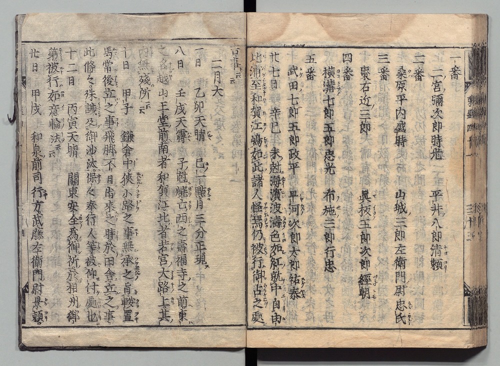 | 3 |  | 89201695 | 吾妻鏡 巻第二・三 Azuma Kagami (The Mirror of the East), Vols. 2 & 3 | | 江戸前期 寛文元年12月 1661 17世紀 | 26.9 cm x 19.7 cm |