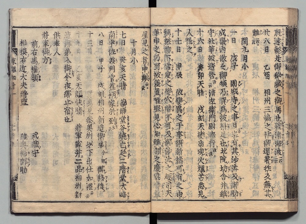 | 9 |  | 89201701 | 吾妻鏡 巻第十四・十五 Azuma Kagami (The Mirror of the East), Vols. 14 & 15 | | 江戸前期 寛文元年12月 1661 17世紀 | 26.9 cm x 19.7 cm |