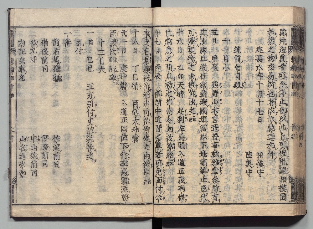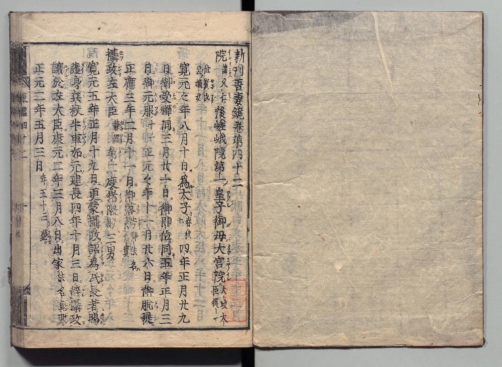 | 22 |  | 89201714 | 吾妻鏡 巻第四十・四十一 Azuma Kagami (The Mirror of the East), Vols. 40 & 41 | | 江戸前期 寛文元年12月 1661 17世紀 | 26.9 cm x 19.7 cm |