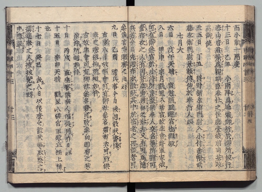 | 8 |  | 89201700 | 吾妻鏡 巻第十二・十三 Azuma Kagami (The Mirror of the East), Vols. 12 & 13 | | 江戸前期 寛文元年12月 1661 17世紀 | 26.9 cm x 19.7 cm |