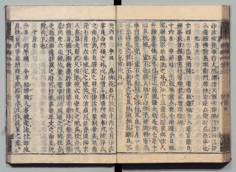 | 19 |  | 89201711 | 吾妻鏡 巻第三十四・三十五 Azuma Kagami (The Mirror of the East), Vols. 34 & 35 | | 江戸前期 寛文元年12月 1661 17世紀 | 26.9 cm x 19.7 cm |