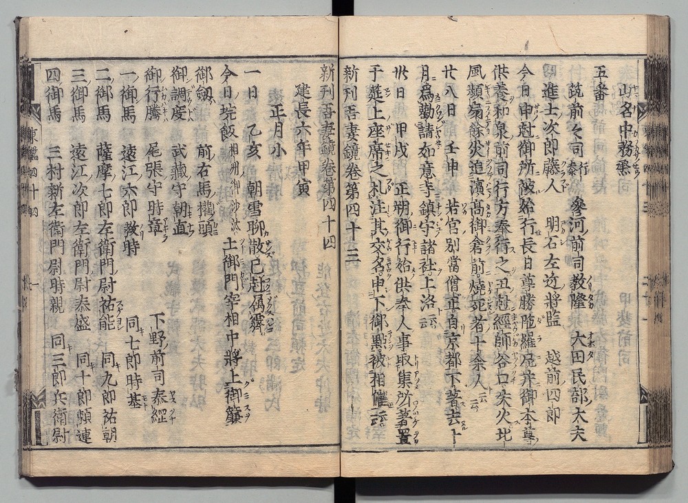 | 23 |  | 89201716 | 吾妻鏡 巻第四十六・四十七 Azuma Kagami (The Mirror of the East), Vols. 46 & 47 | | 江戸前期 寛文元年12月 1661 17世紀 | 26.9 cm x 19.7 cm |