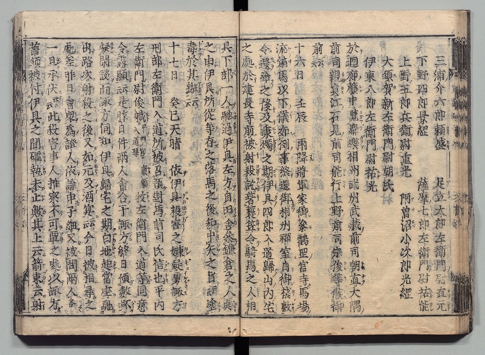 | 11 |  | 89201703 | 吾妻鏡 巻第十八・十九 Azuma Kagami (The Mirror of the East), Vols. 18 & 19 | | 江戸前期 寛文元年12月 1661 17世紀 | 26.9 cm x 19.7 cm |