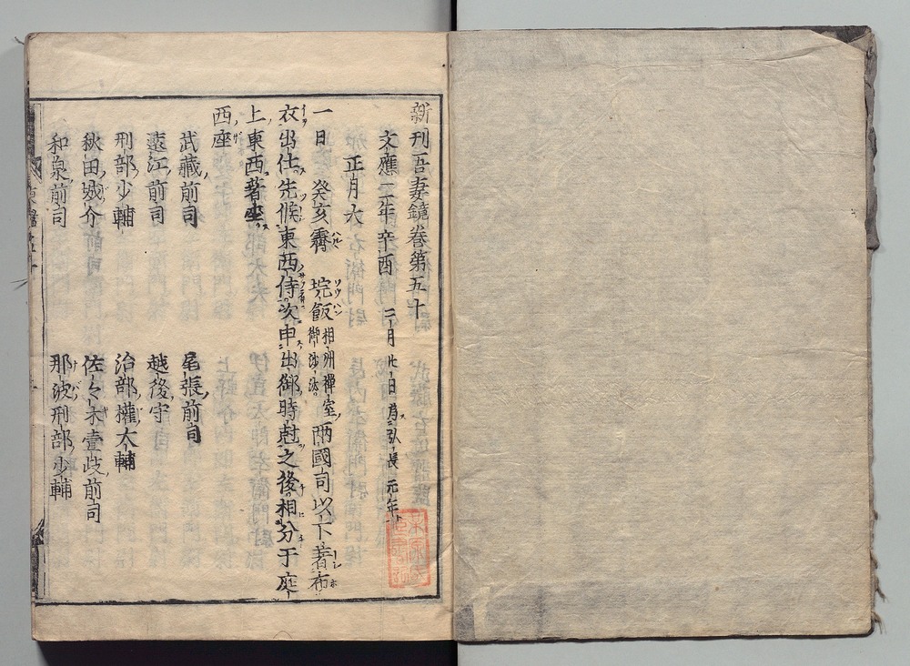 | 24 |  | 89201716 | 吾妻鏡 巻第四十六・四十七 Azuma Kagami (The Mirror of the East), Vols. 46 & 47 | | 江戸前期 寛文元年12月 1661 17世紀 | 26.9 cm x 19.7 cm |