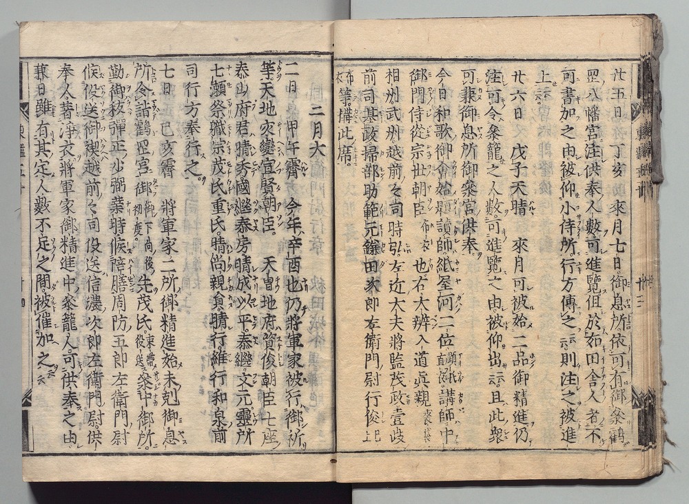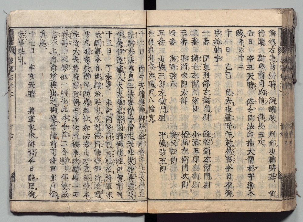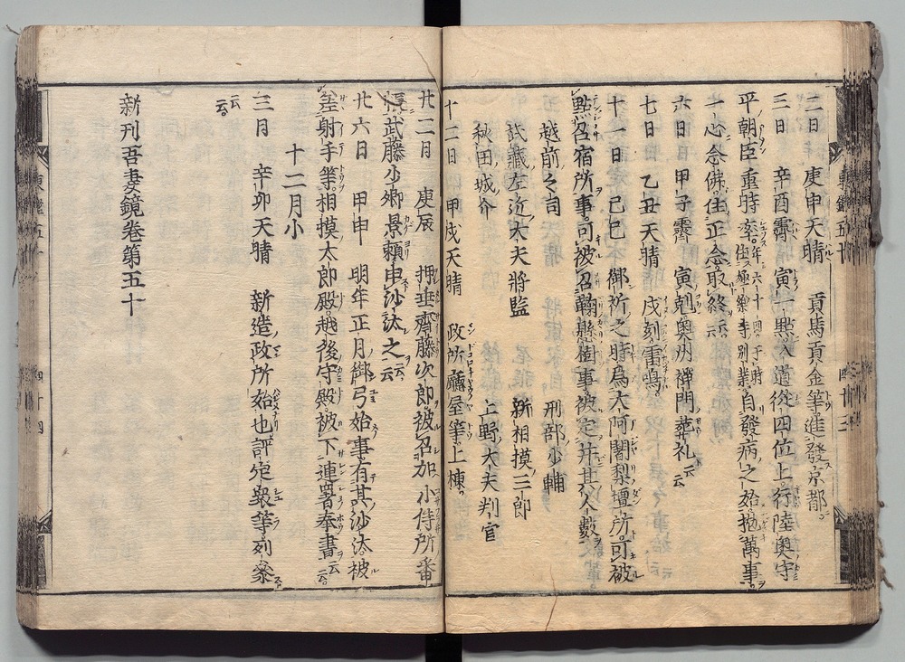 | 8 |  | 89201700 | 吾妻鏡 巻第十二・十三 Azuma Kagami (The Mirror of the East), Vols. 12 & 13 | | 江戸前期 寛文元年12月 1661 17世紀 | 26.9 cm x 19.7 cm |