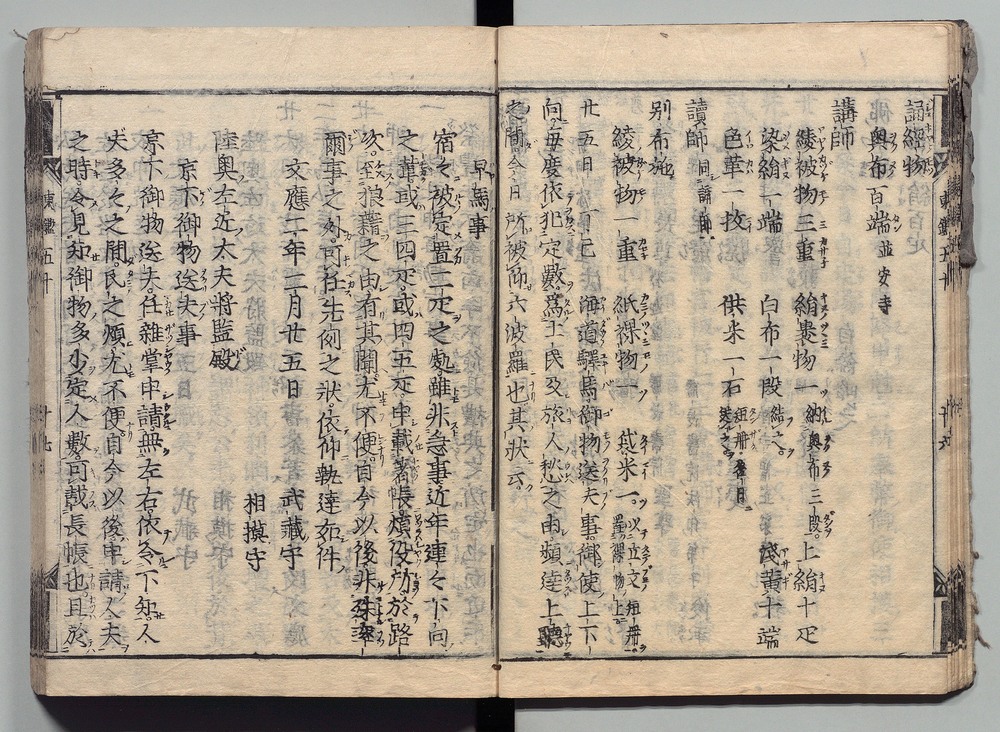 | 4 |  | 89201696 | 吾妻鏡 巻第四・五 Azuma Kagami (The Mirror of the East), Vols. 4 & 5 | | 江戸前期 寛文元年12月 1661 17世紀 | 26.9 cm x 19.7 cm |