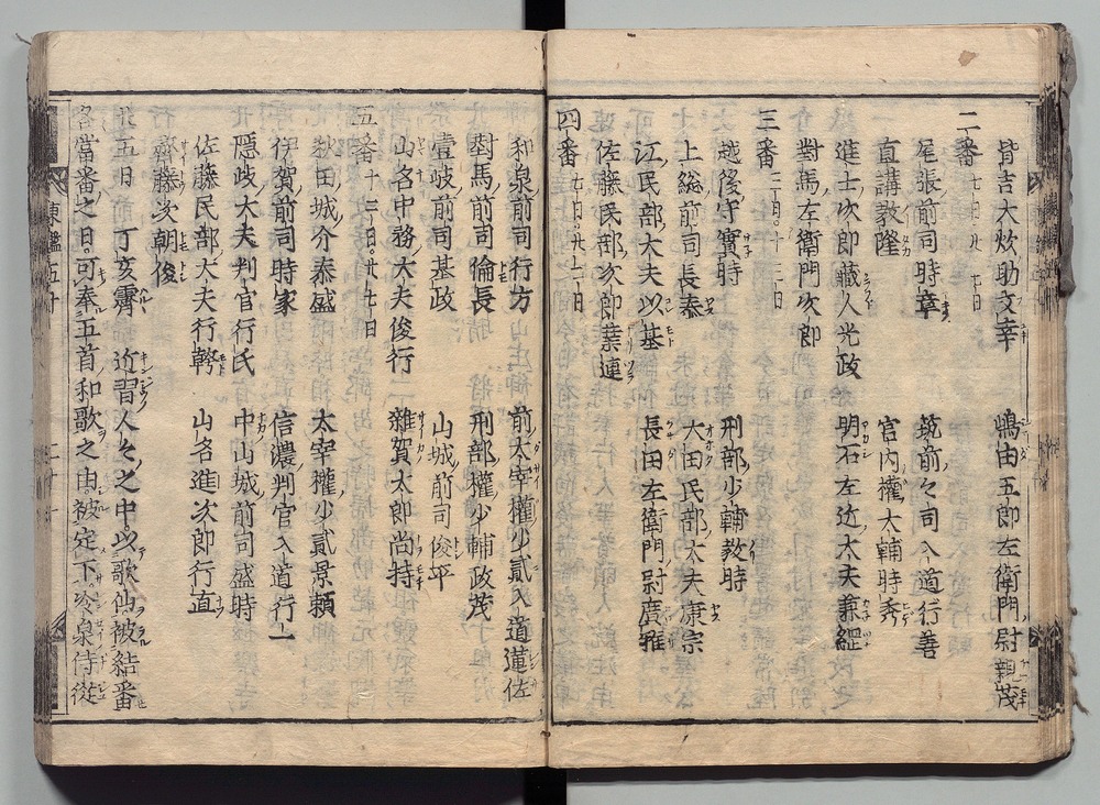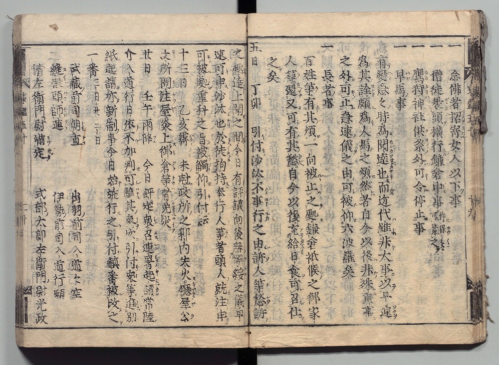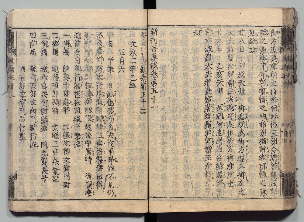 | 13 |  | 89201705 | 吾妻鏡 巻第二十二・二十三 Azuma Kagami (The Mirror of the East), Vols. 22 & 23 | | 江戸前期 寛文元年12月 1661 17世紀 | 26.9 cm x 19.7 cm |