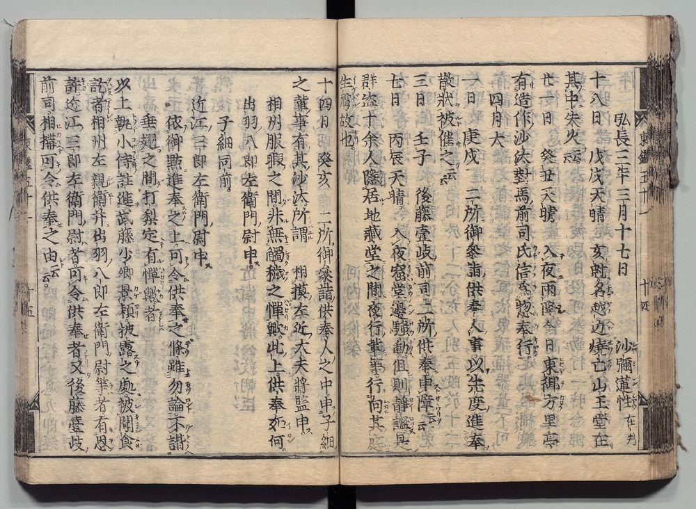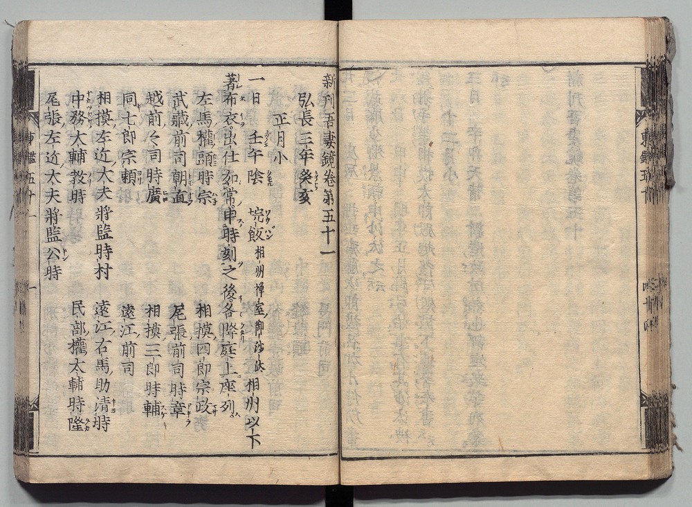 | 9 |  | 89201701 | 吾妻鏡 巻第十四・十五 Azuma Kagami (The Mirror of the East), Vols. 14 & 15 | | 江戸前期 寛文元年12月 1661 17世紀 | 26.9 cm x 19.7 cm |