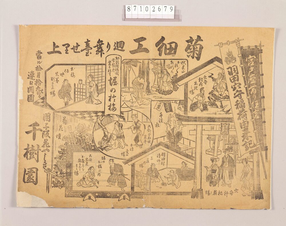 Performance Flyer: Chrysanthemum Dolls on Revolving Stage and Stage Elevator, Dangozaka Hanayashiki Senjuen