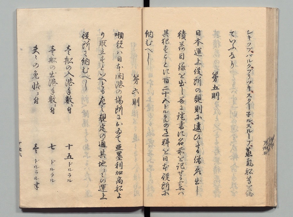 | 5 | ![]() | 87201475 | 阿蘭陀国条約並税則 The Treaty of Amity and Commerce between the Netherlands and Japan and Taxation Rules | 江戸末期 安政6年 1859 19世紀 | 25.6 cm x 18.0 cm |