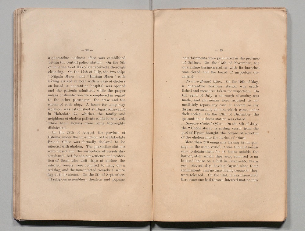 A BRIEF REVIEW OF THE OPERATIONS OF THE HOME DEPARTMENT, IN CONECTION WITH CHOLERA EPIDEMIC OF THE