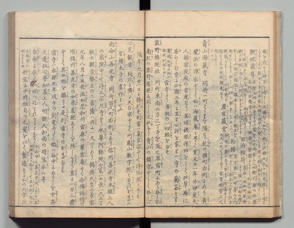 | 2 |  | 94003415 | 江戸名所図会 1 Edo Meisho Zue (Illustrated Guide to Famous Places of Tokyo), Vol. 1 | 松涛軒 斎藤長秋/編輯 長谷川法橋雪旦/画 | 江戸後期 天保5年孟春 1834 19世紀 | 26.1 cm x 18.5 cm x 1.3 cm |