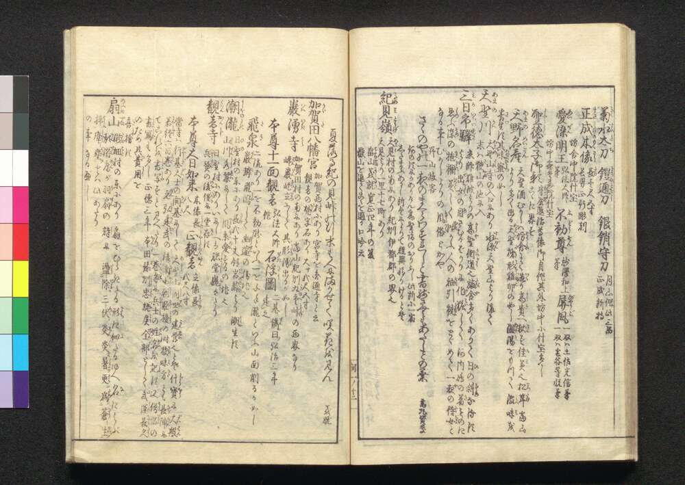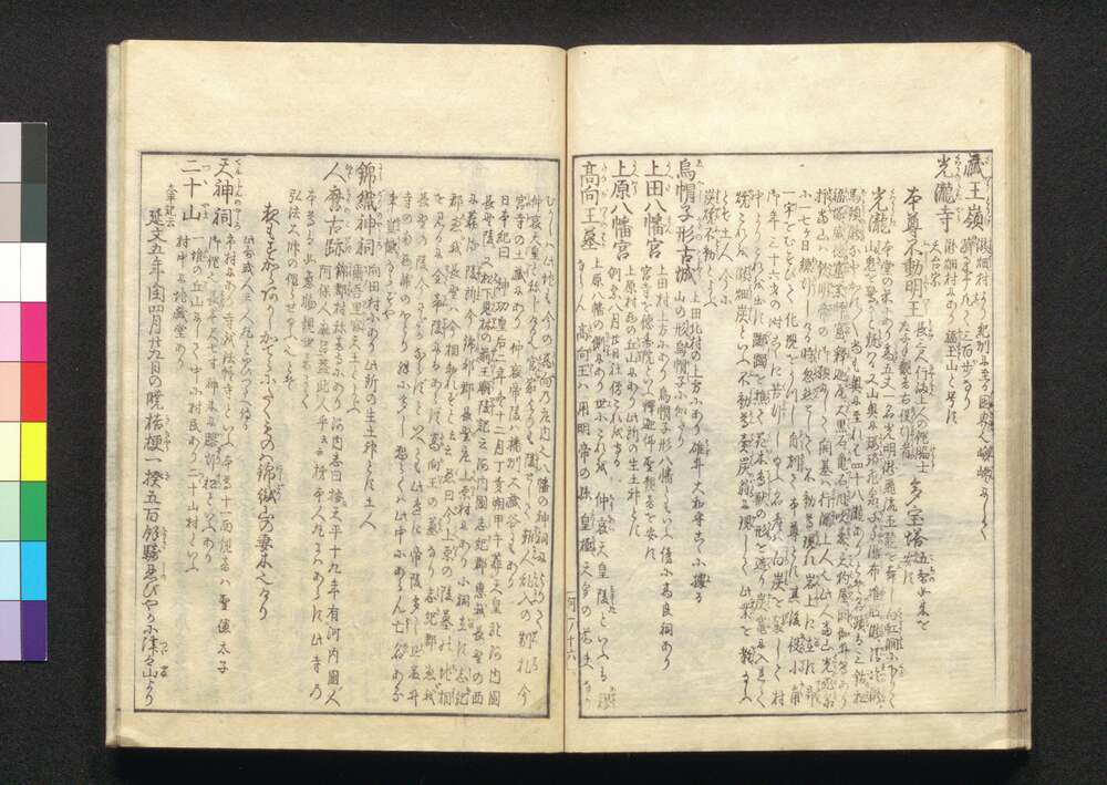| 2 | ![]() | 86213234 | 河内名所図会 Kawachi Meisho Zu-e (Illustrated Book of Famous Places in Kawachi), Part 1 of Vol. 2 | 秋里籬島/著 丹羽桃溪/画 | 江戸後期 享和元年11月 1801 19世紀 | 26.3 cm x 18.5 cm |