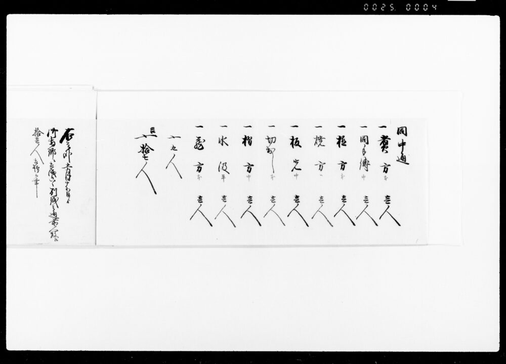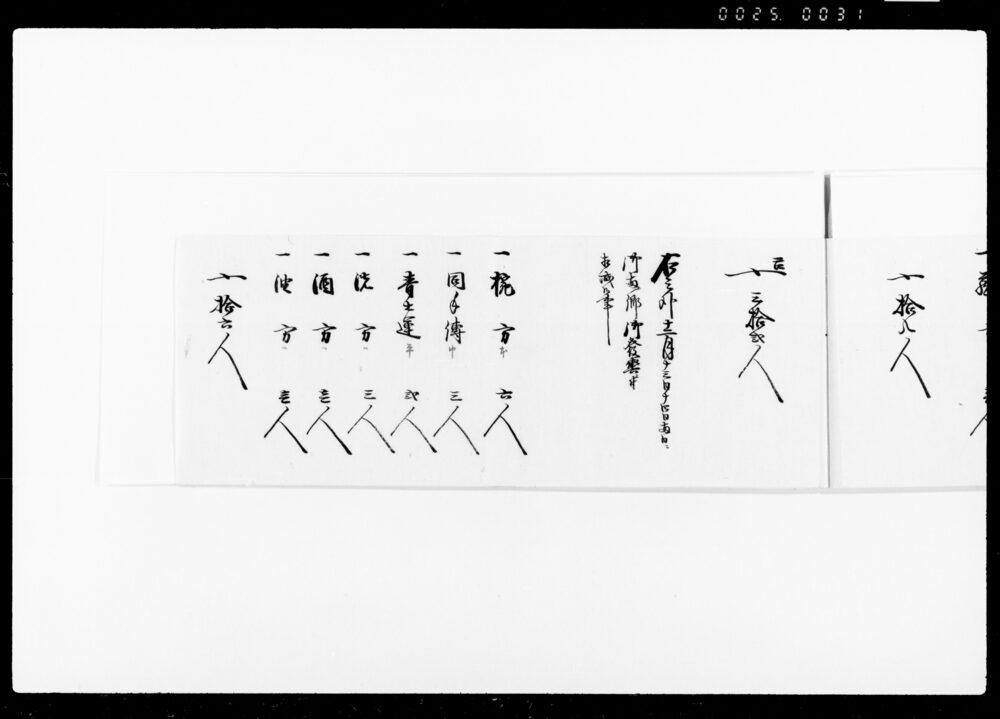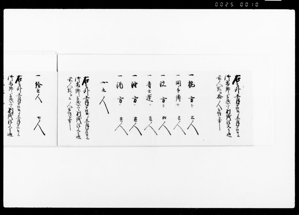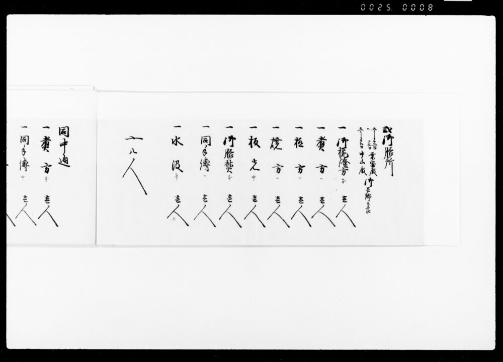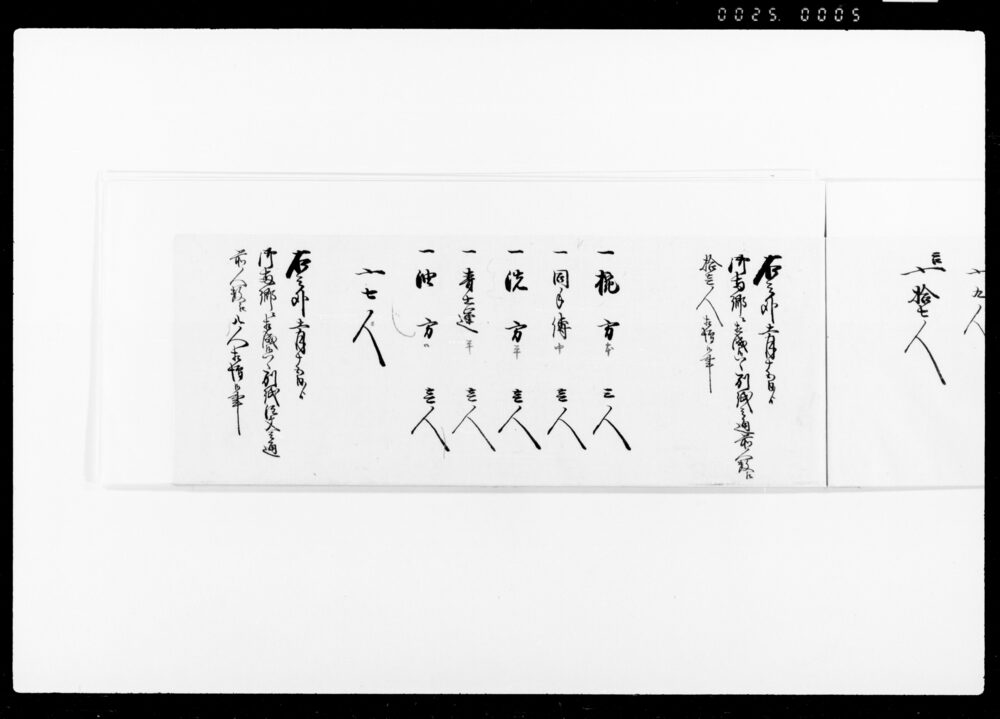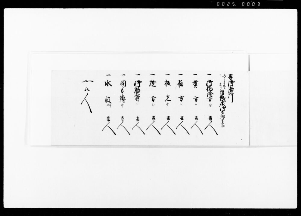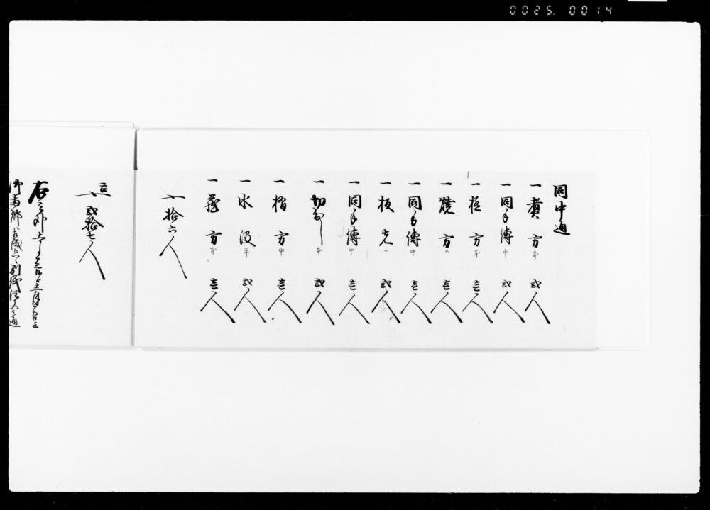 Record of the Number of Workers Working as Nakadōri and Kabu (Envoys), Waitstaff, and Cooking Staff at the Kitchen on the Occasion of the Arrival near Hitotsubashi Gomongai