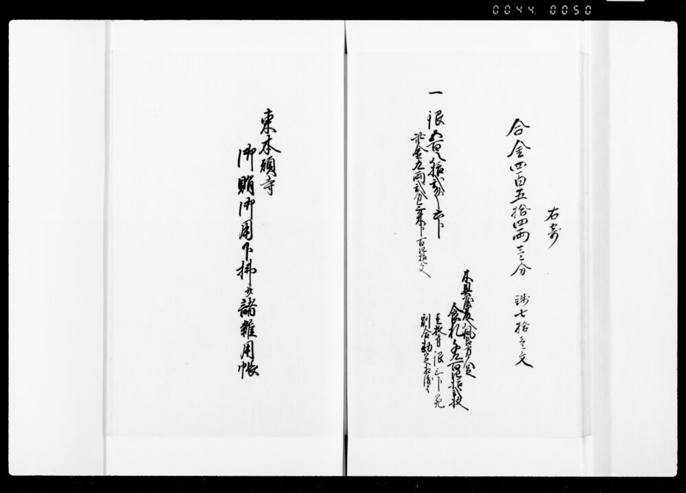 Record of Payments for All Subcontracts Related to Provisions and Necessities for Lower Officials during Their Stay at Higashi and Nishi Honganji Temples and for Various Expenses, on the Occasion of Princess Kazu's Procession to Edo