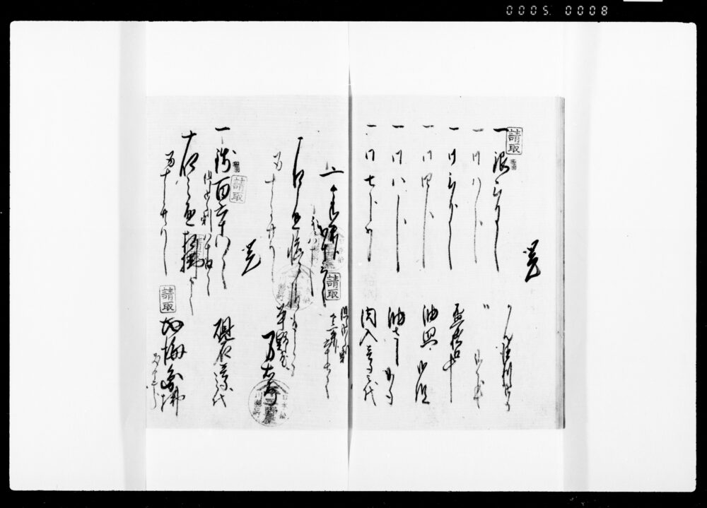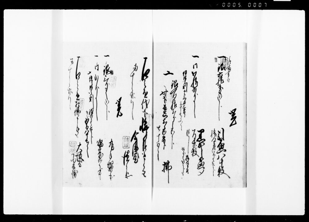 Receipt Stamp Book for Payments of Necessary Items Purchased in Part of the Official Contract for Provisions for Lower Officials during Their Stay at Temples on the Occasion of Princess Kazu's Procession to Edo