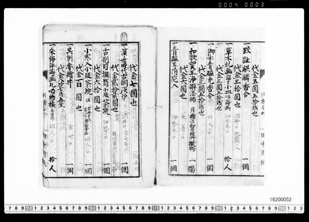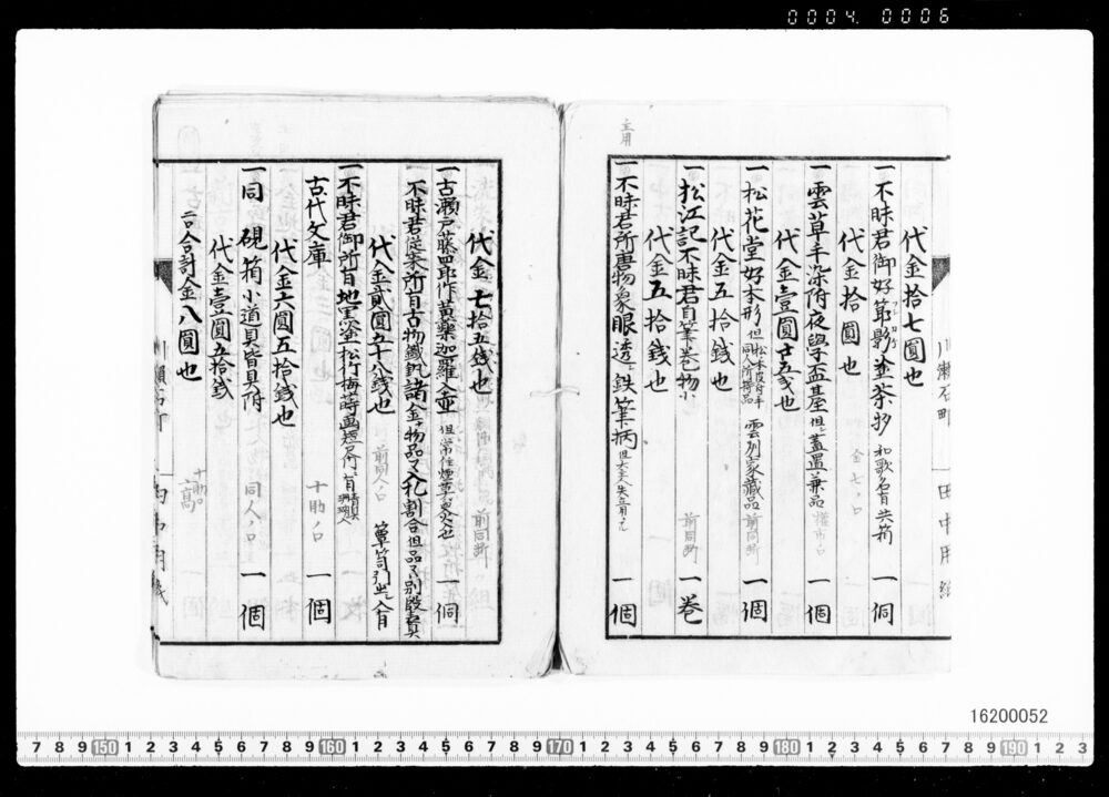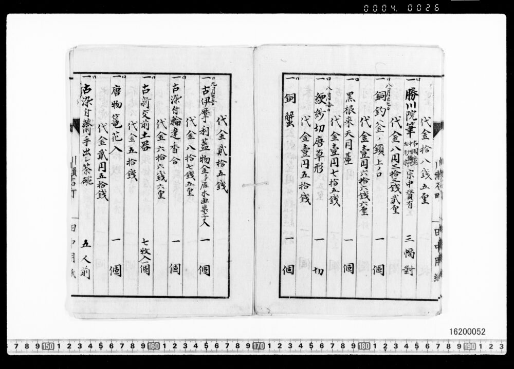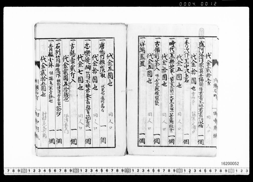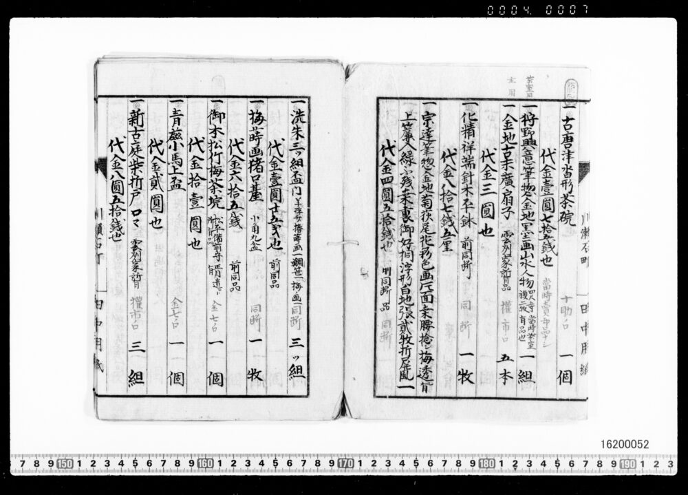 Purchase Price Book for Tea Utensils (No. Unknown : Archives of the Komeya Tanaka Clan)