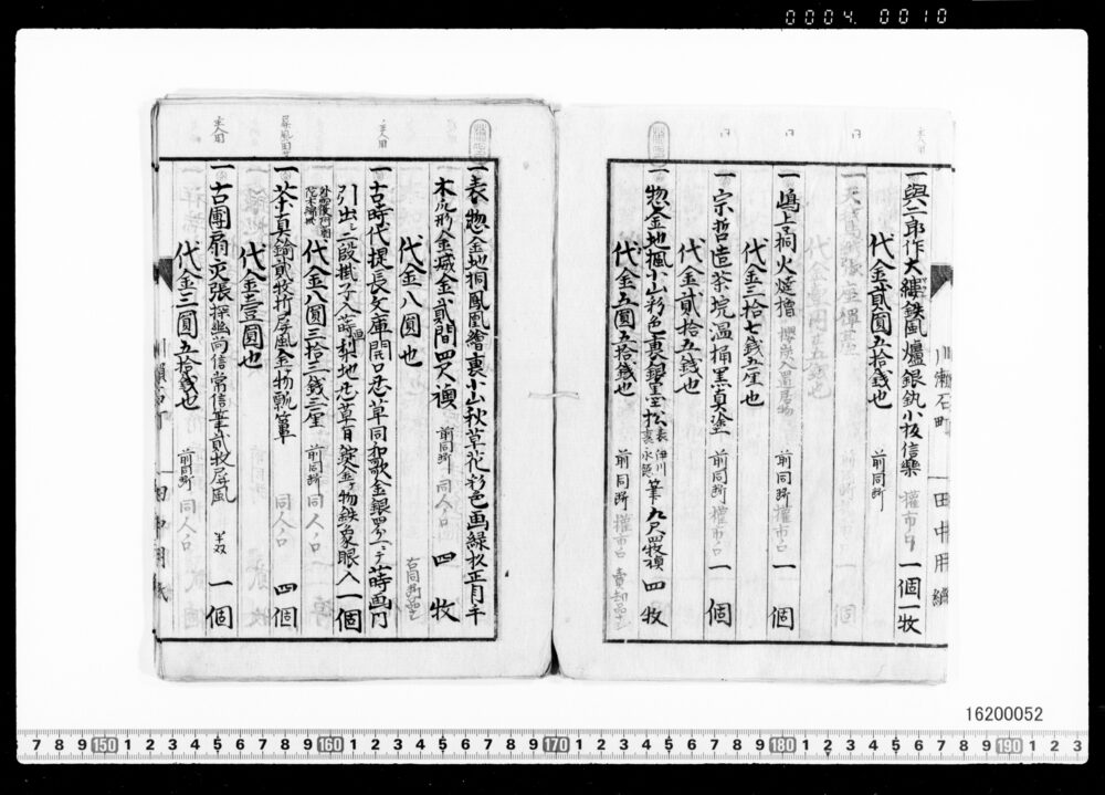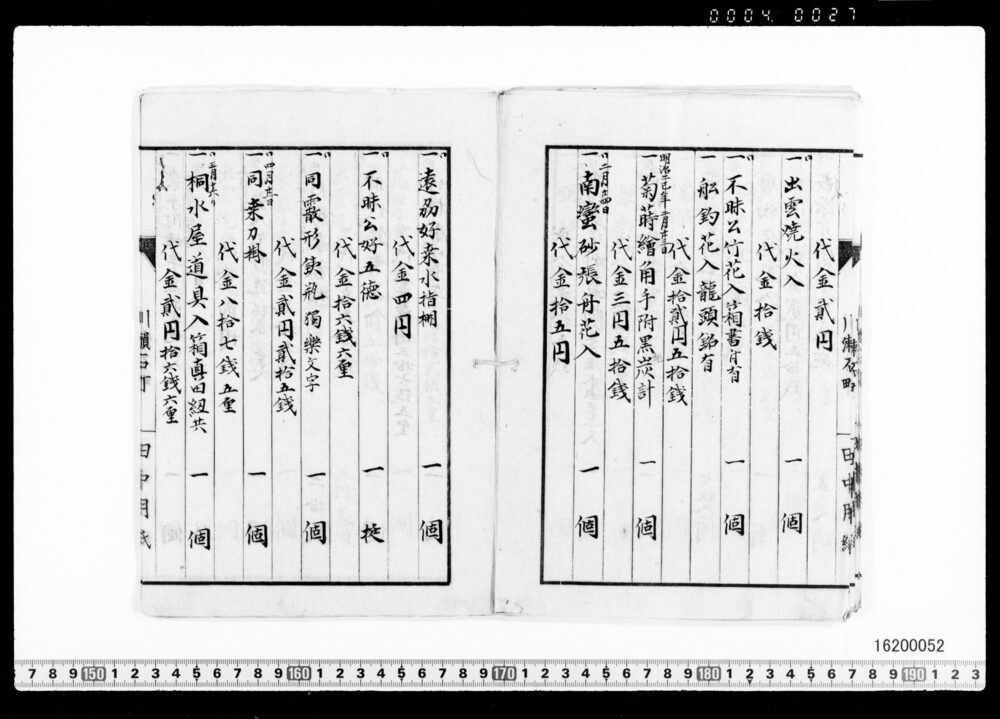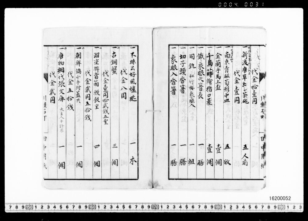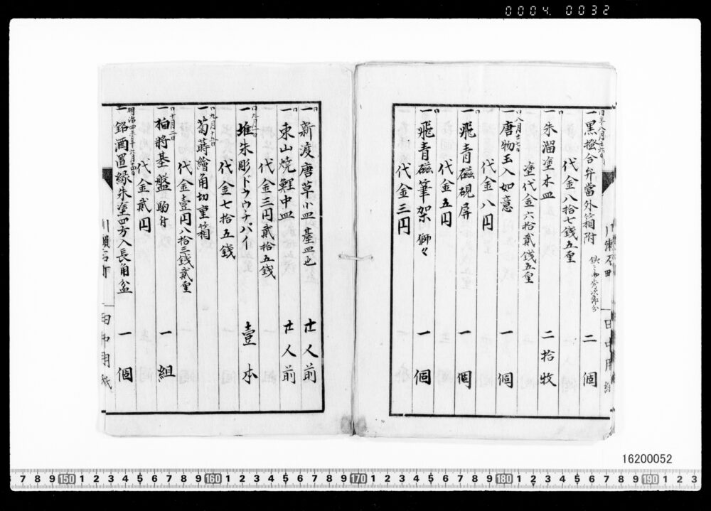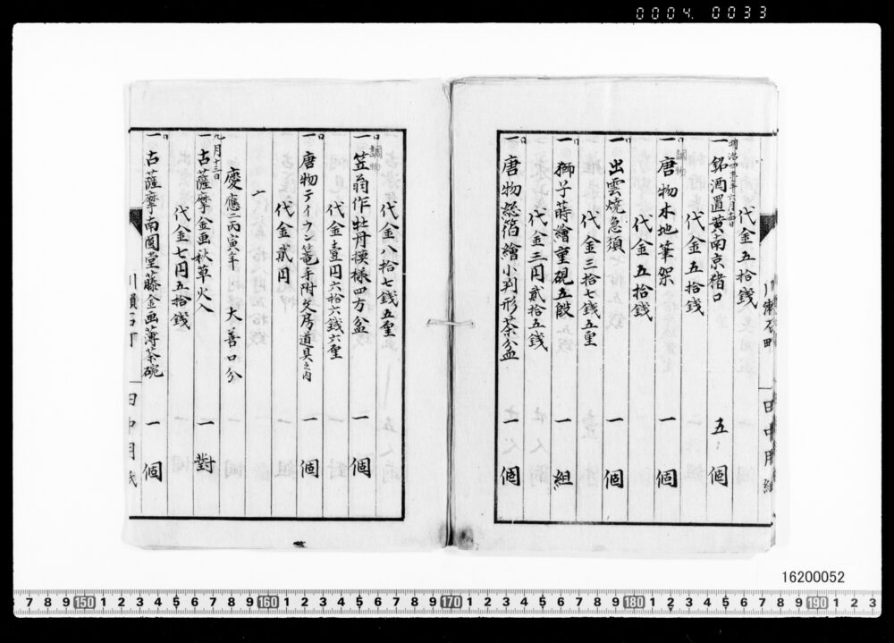 | 3 | ![]() | 16200050 | 茶器類買価帳 第二号 Purchase Price Book for Tea Utensils, No.2 (Archives of the Komeya Tanaka Clan) | 明治前期 19世紀 | 25.0cm x 18.0cm | |