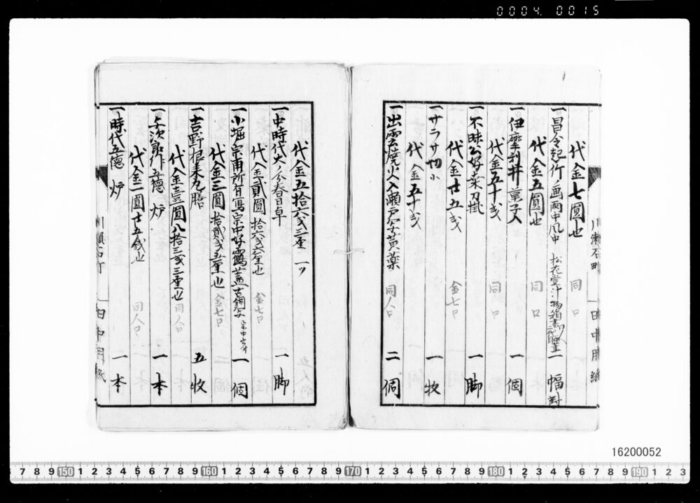 | 4 | ![]() | 16200051 | 茶器類買価帳 第三号 Purchase Price Book for Tea Utensils, No.3 (Archives of the Komeya Tanaka Clan) | 明治前期 19世紀 | 25.2cm x 17.8cm |