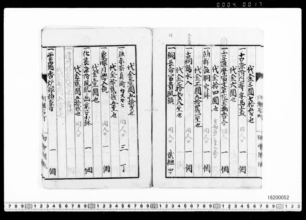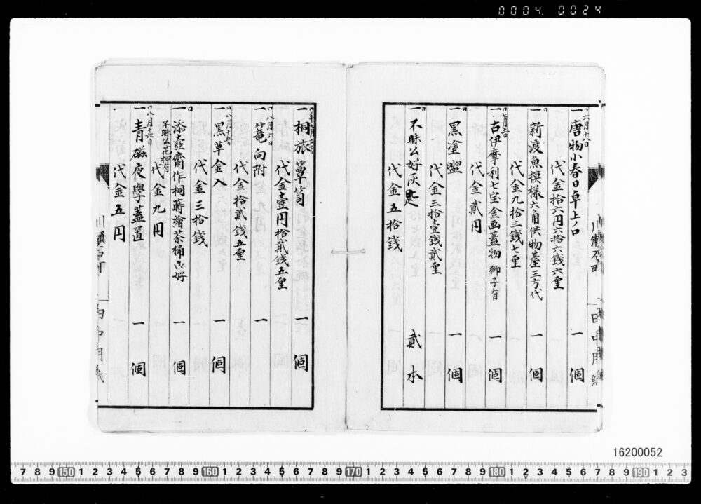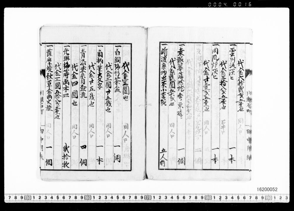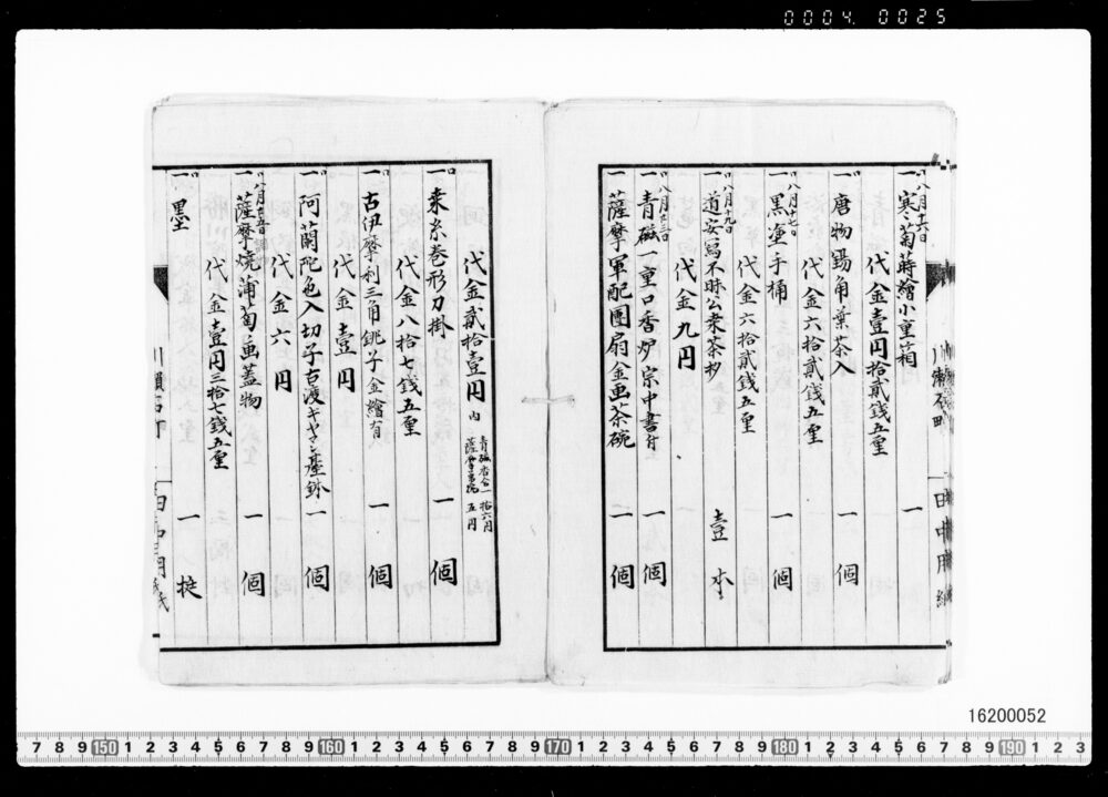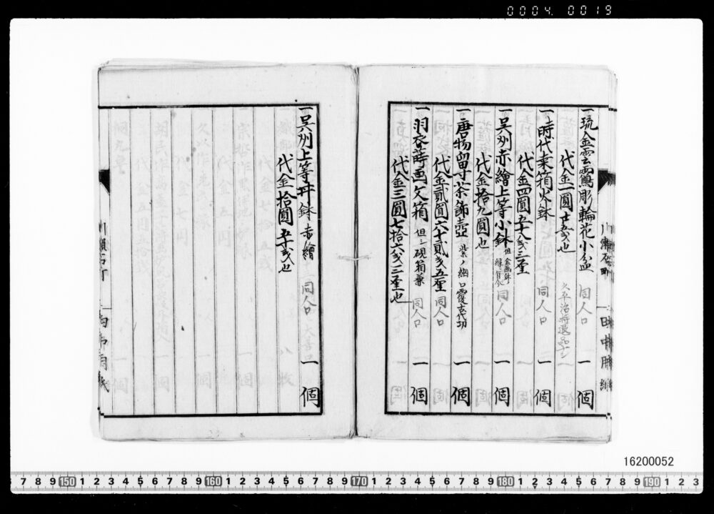 | 1 | ![]() | 16200049-16200052 | 茶器類買価帳 Record of Tea Utensils Purchase Prices | 近世~近代 19世紀 | ||
