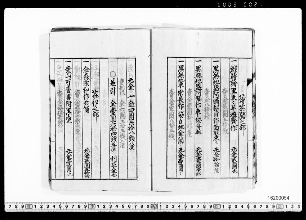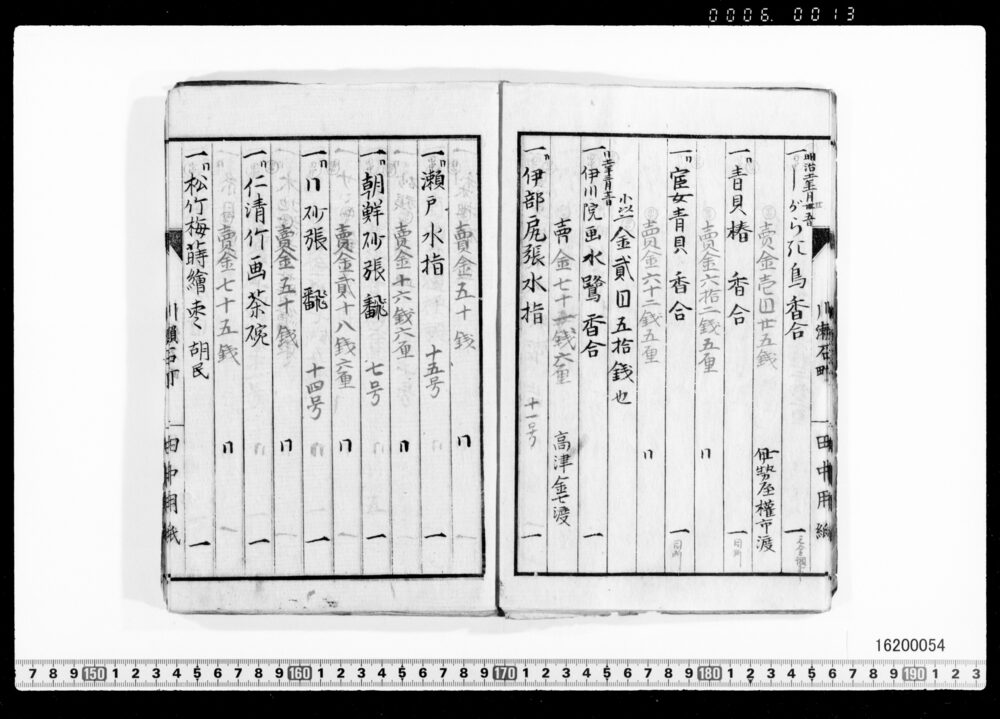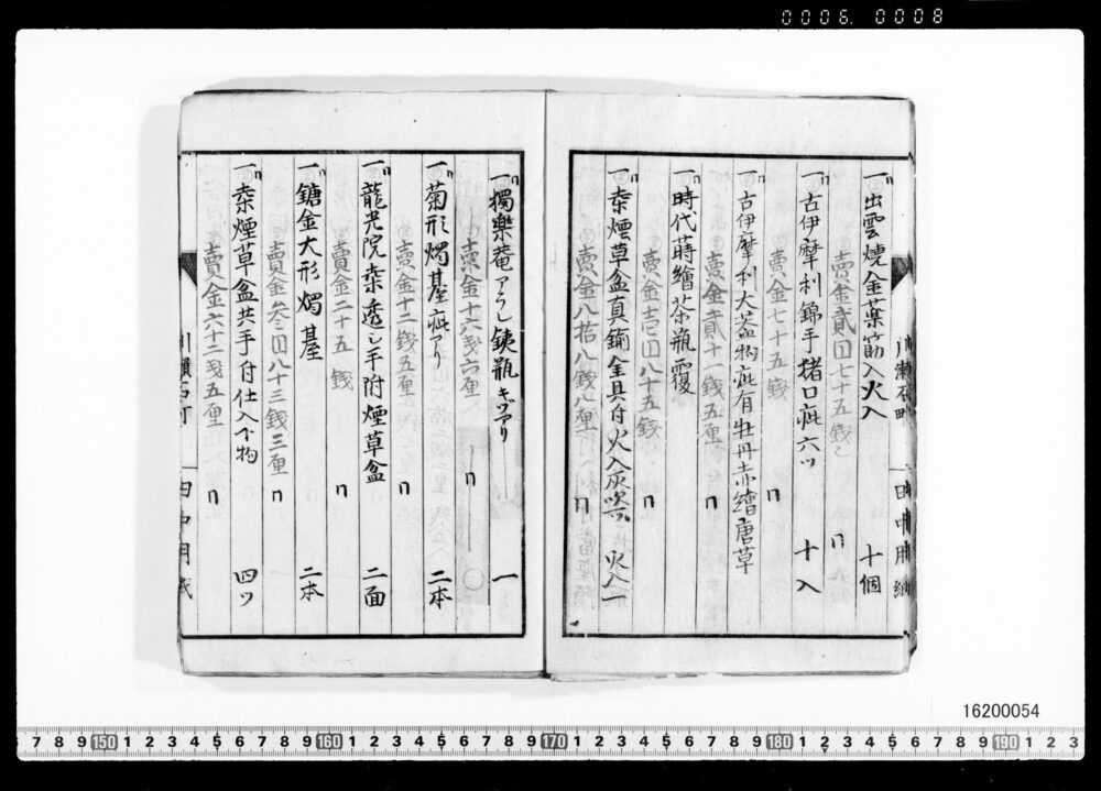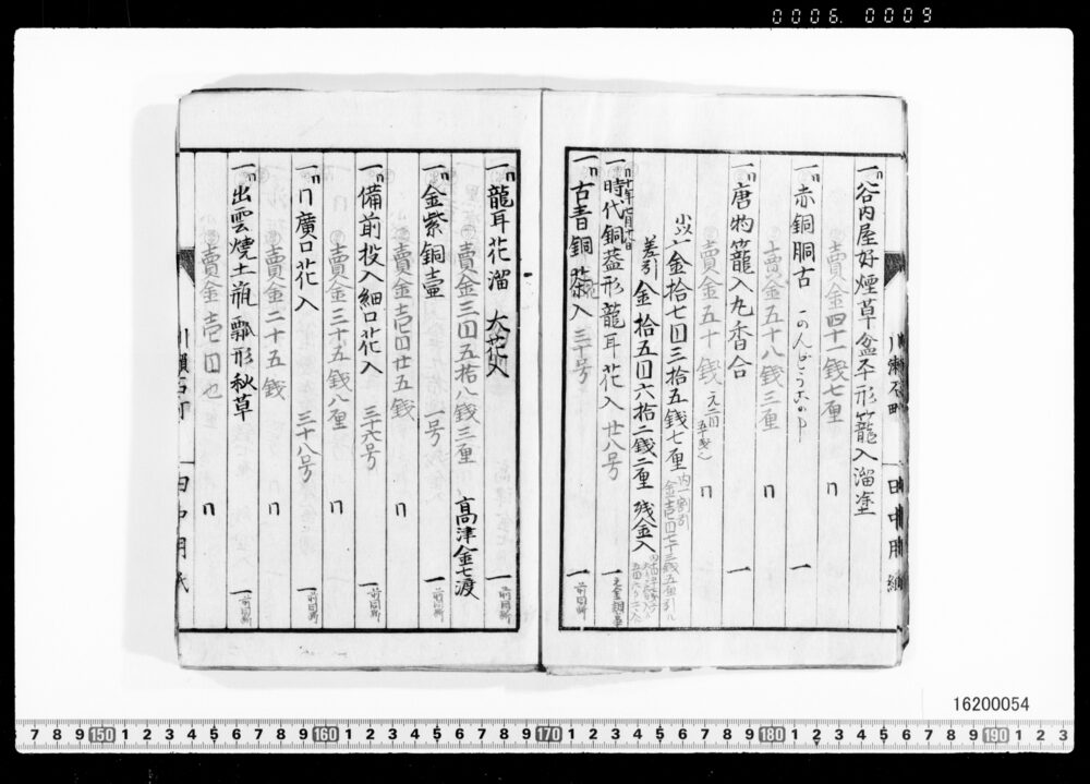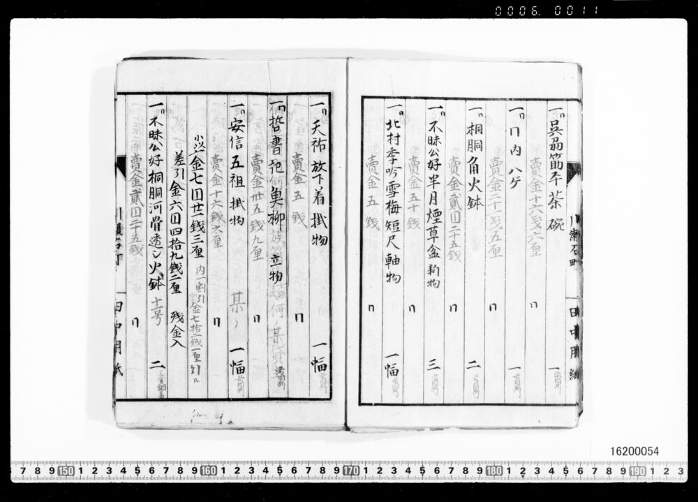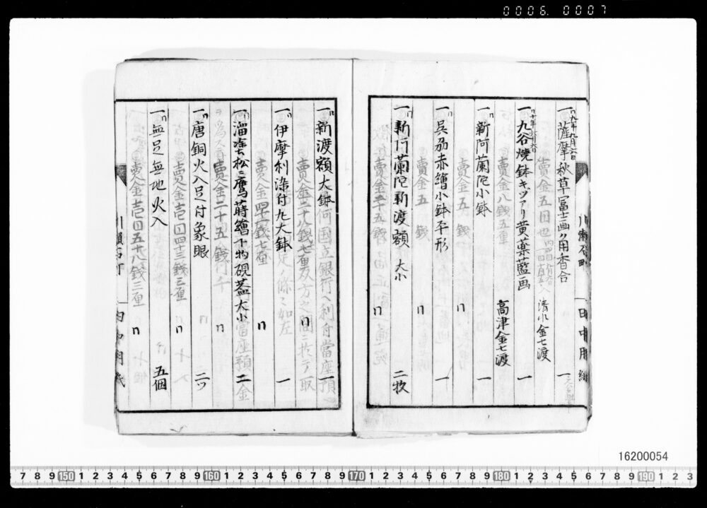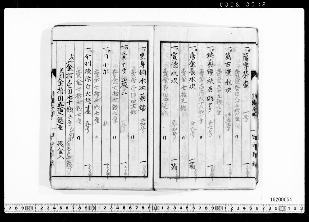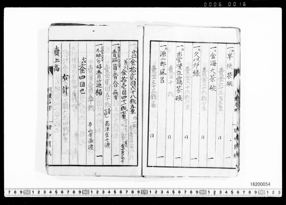 Sales Prices of Hanging Scrolls and Tea Utensils (Archives of the Komeya Tanaka Clan)