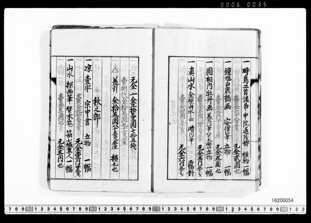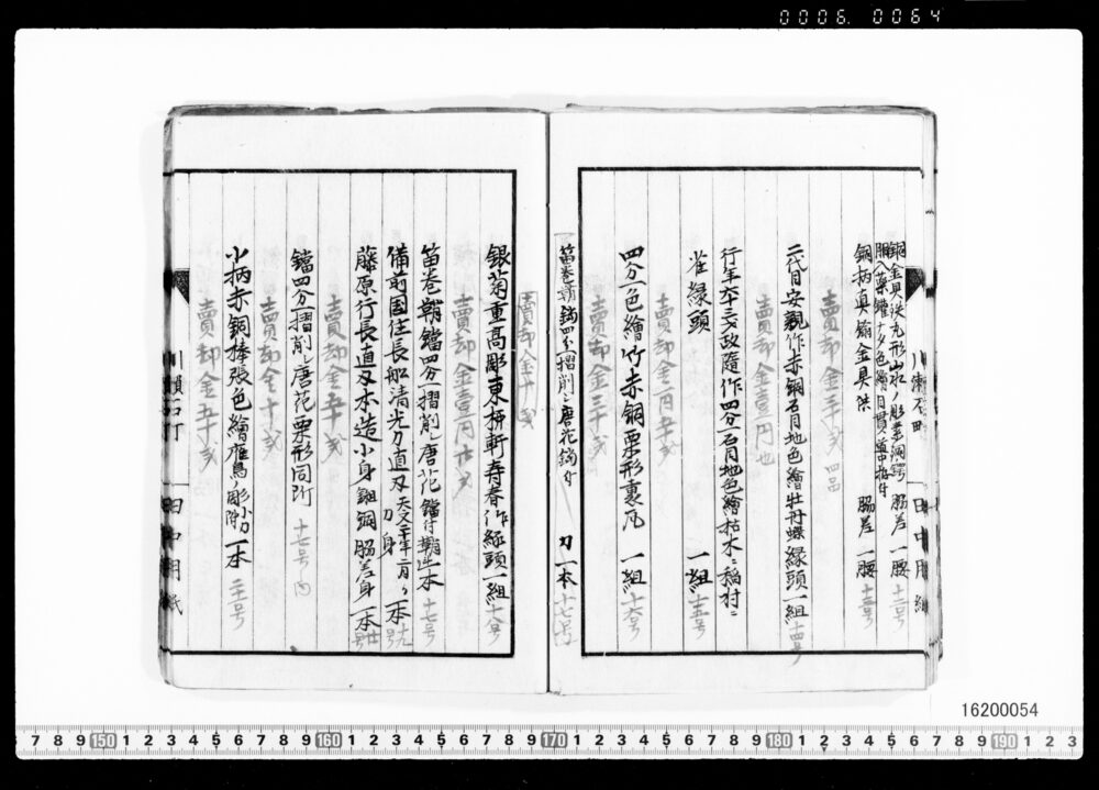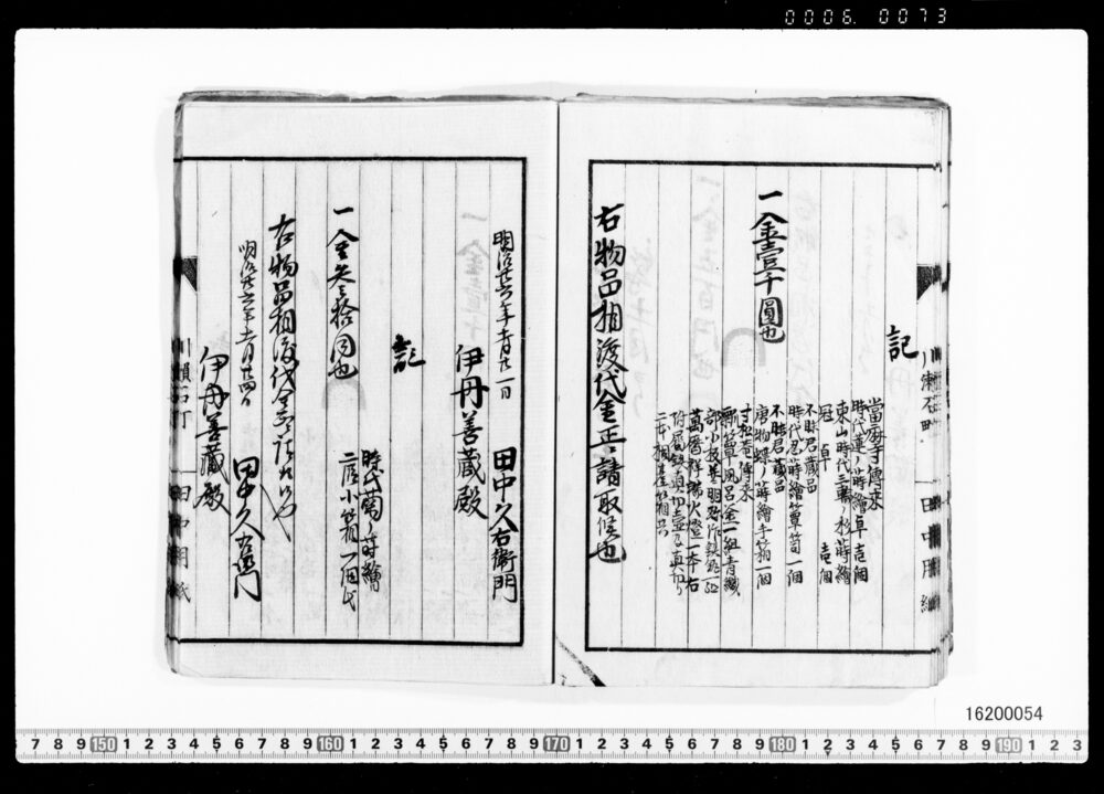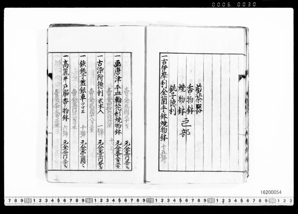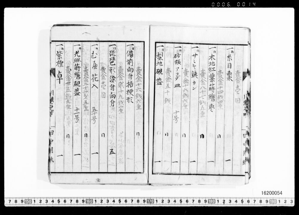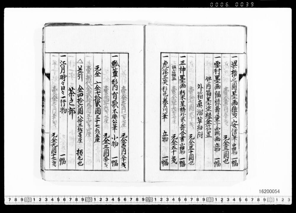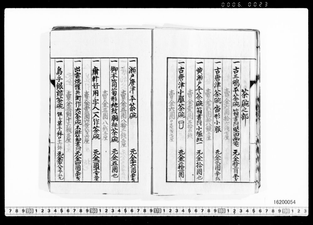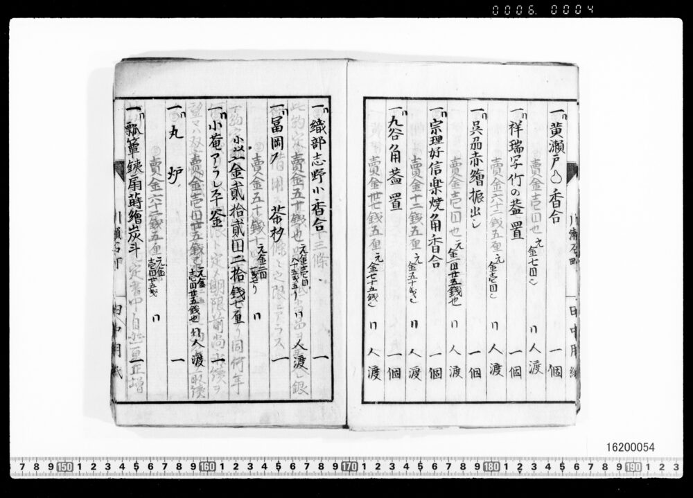 Sales Prices of Hanging Scrolls and Tea Utensils (Archives of the Komeya Tanaka Clan)