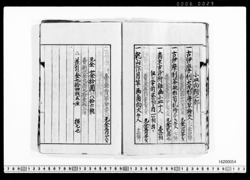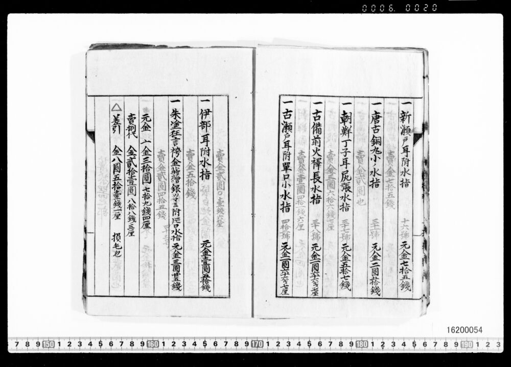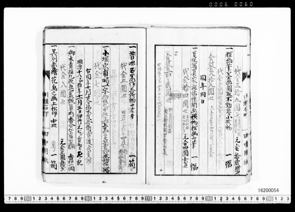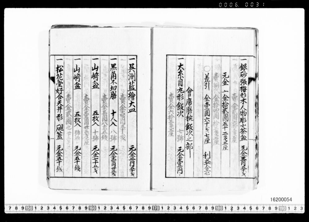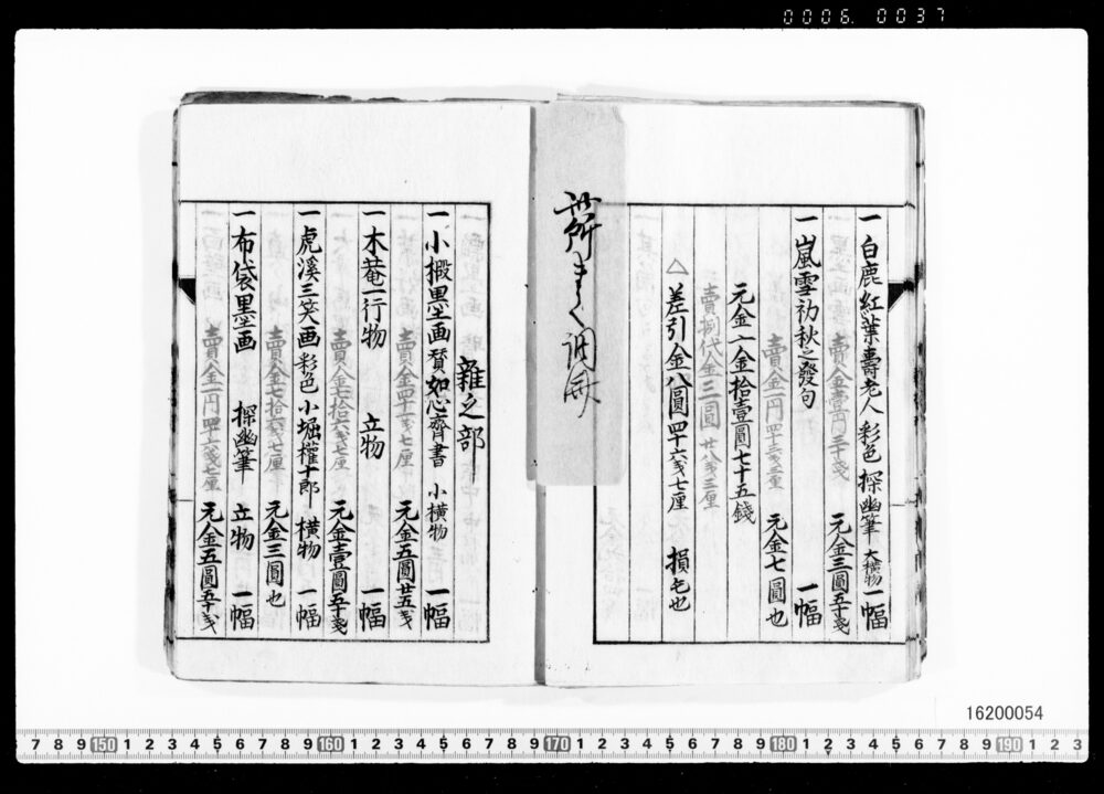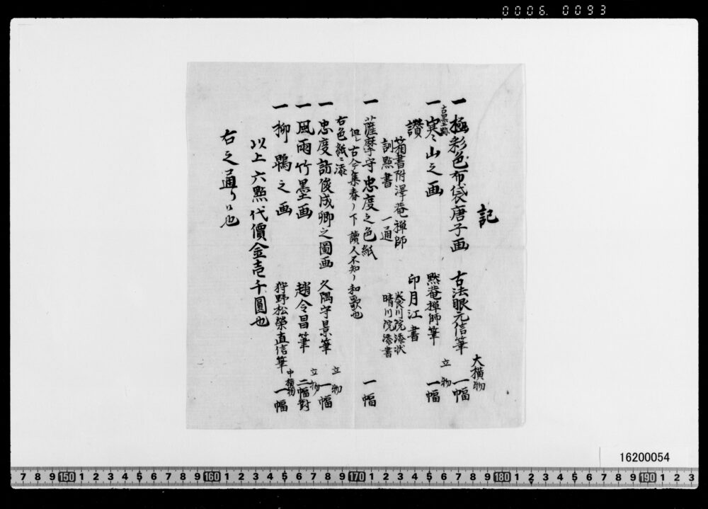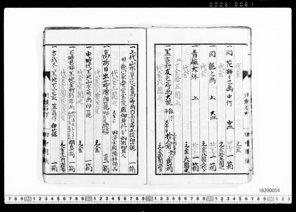 Sales Prices of Hanging Scrolls and Tea Utensils (Archives of the Komeya Tanaka Clan)