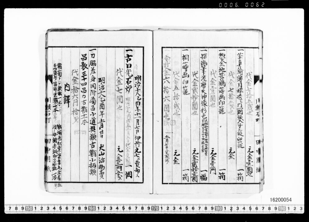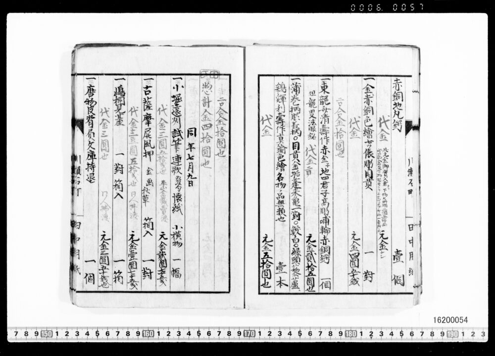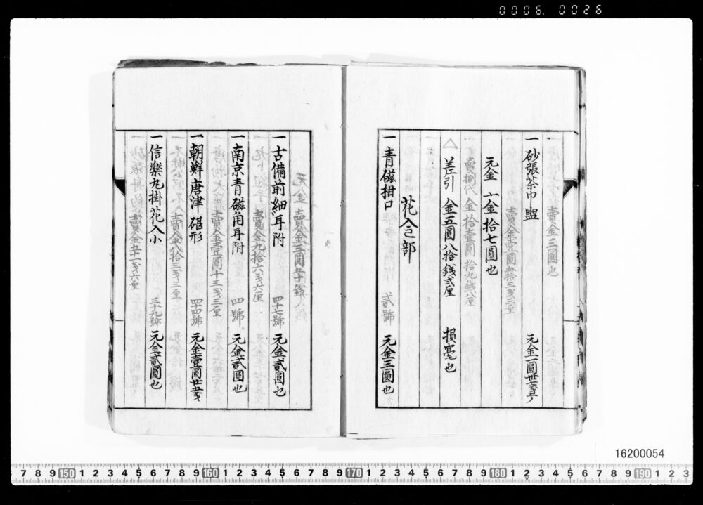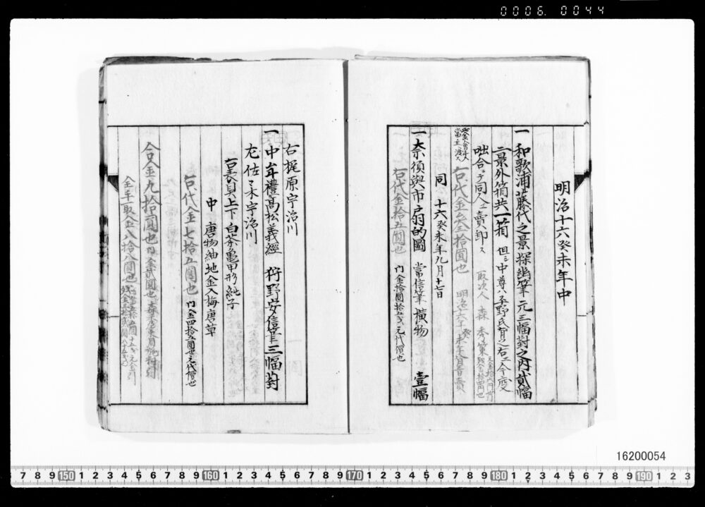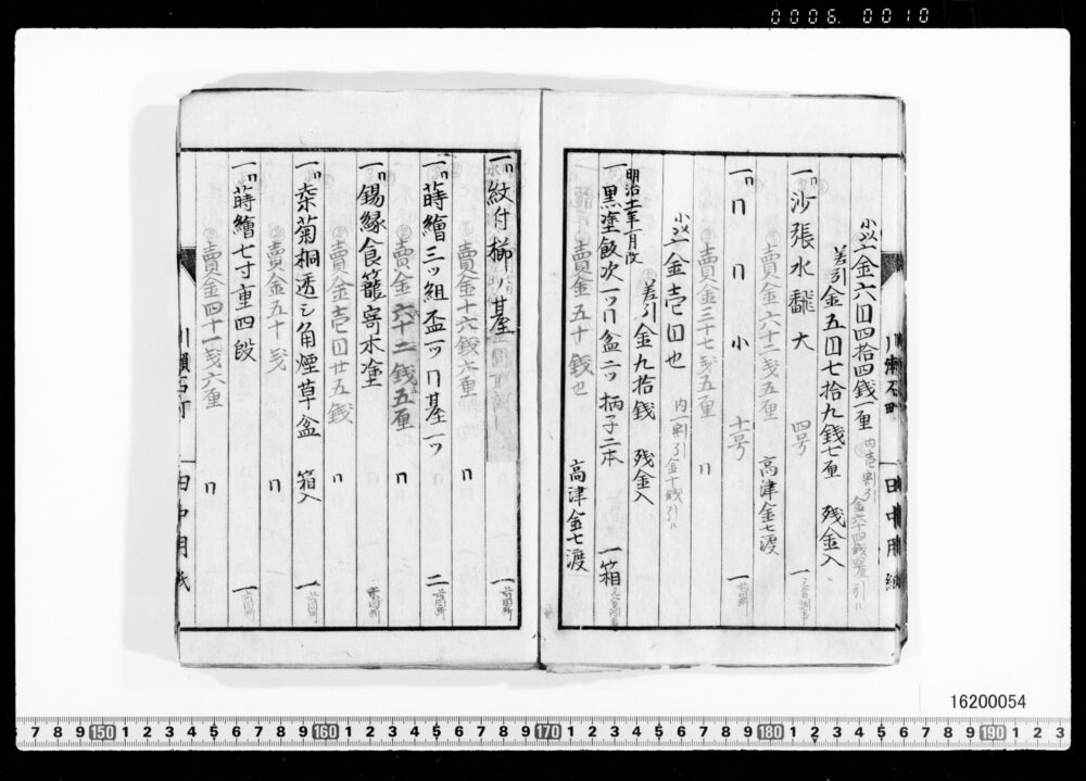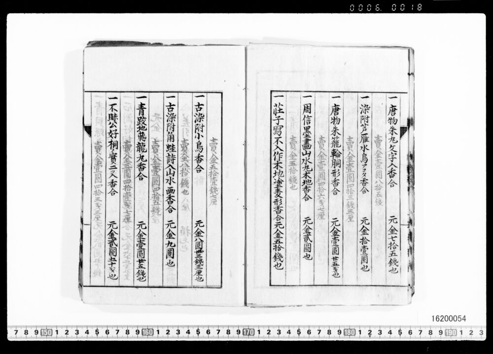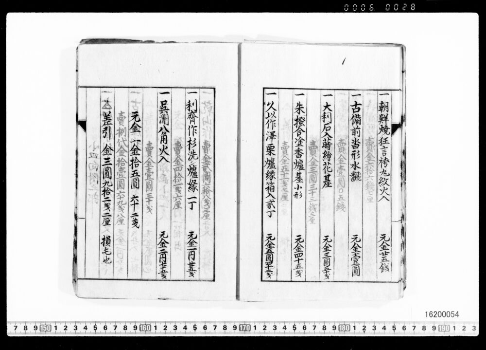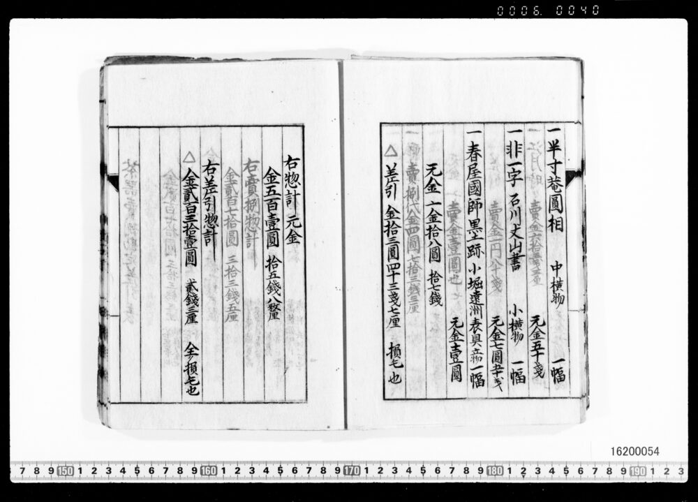 Sales Prices of Hanging Scrolls and Tea Utensils (Archives of the Komeya Tanaka Clan)